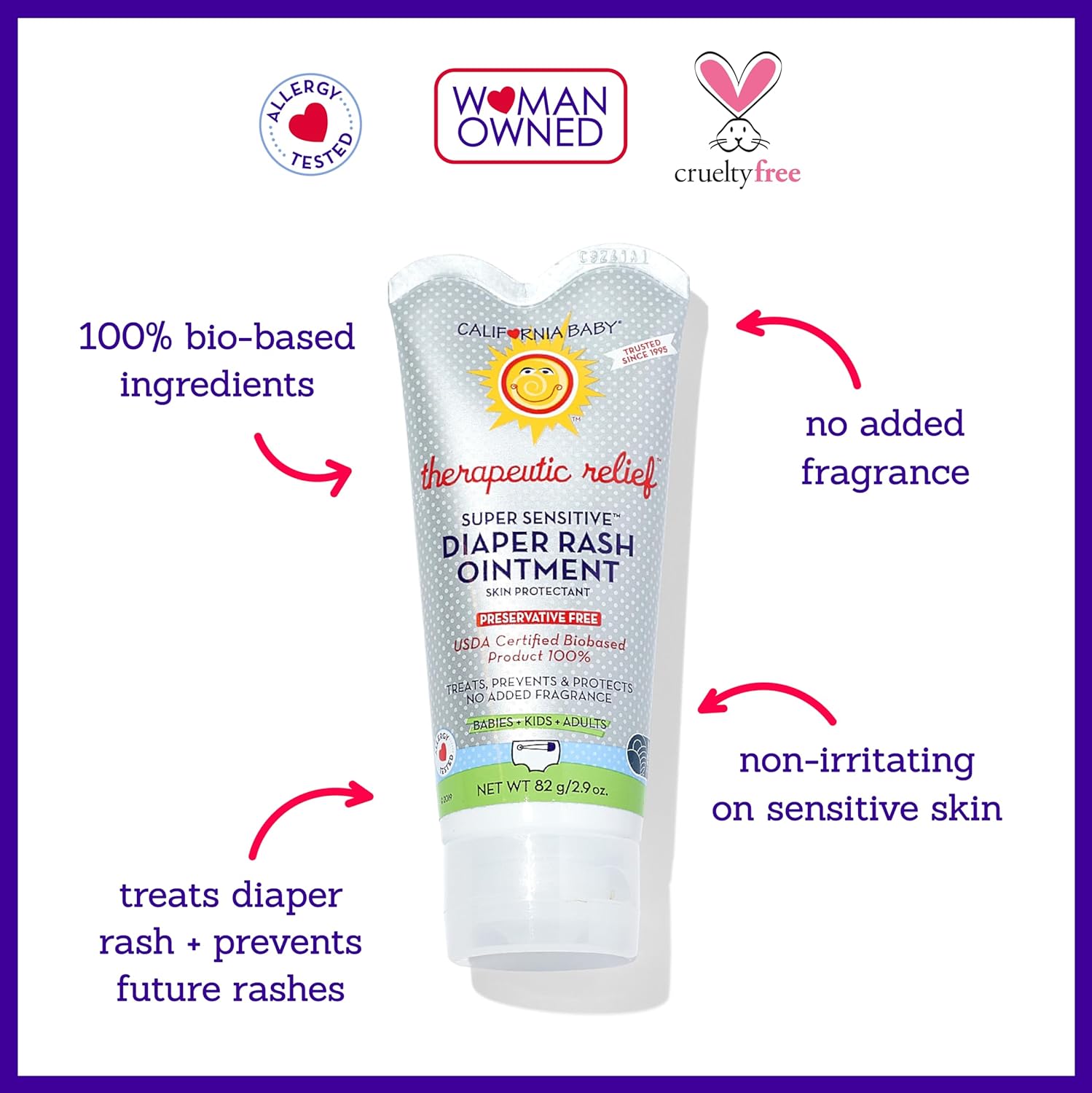 California Baby Super Sensitive Unscented Diaper Rash Cream | Zinc Oxide Ointment | 100% Bio-Based | Fragrance Free | Hypoallergenic | Soothing Diaper Rash Cream For Baby | 82 G / 2.9 Oz