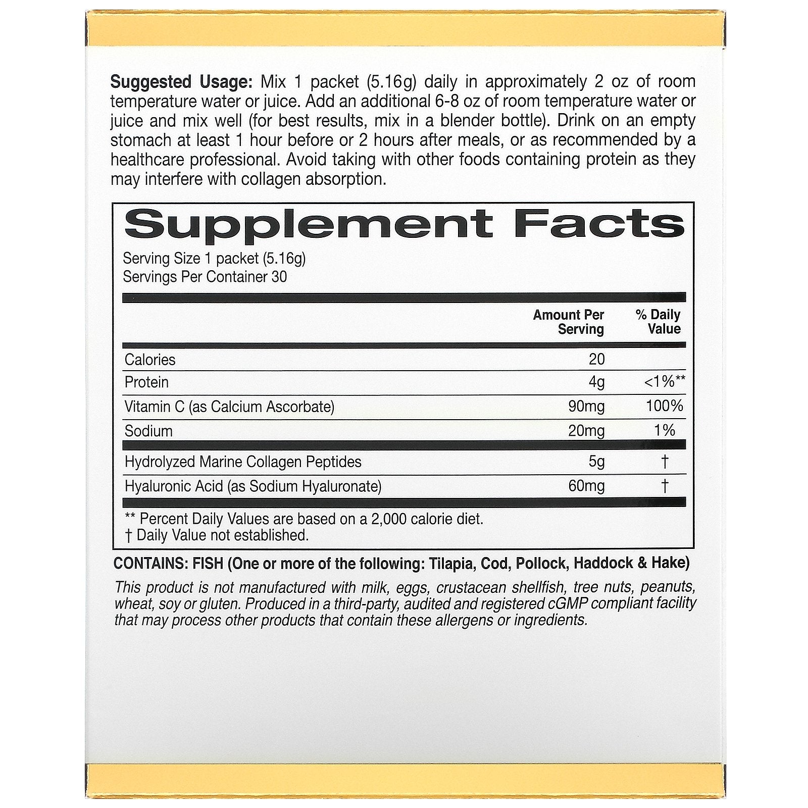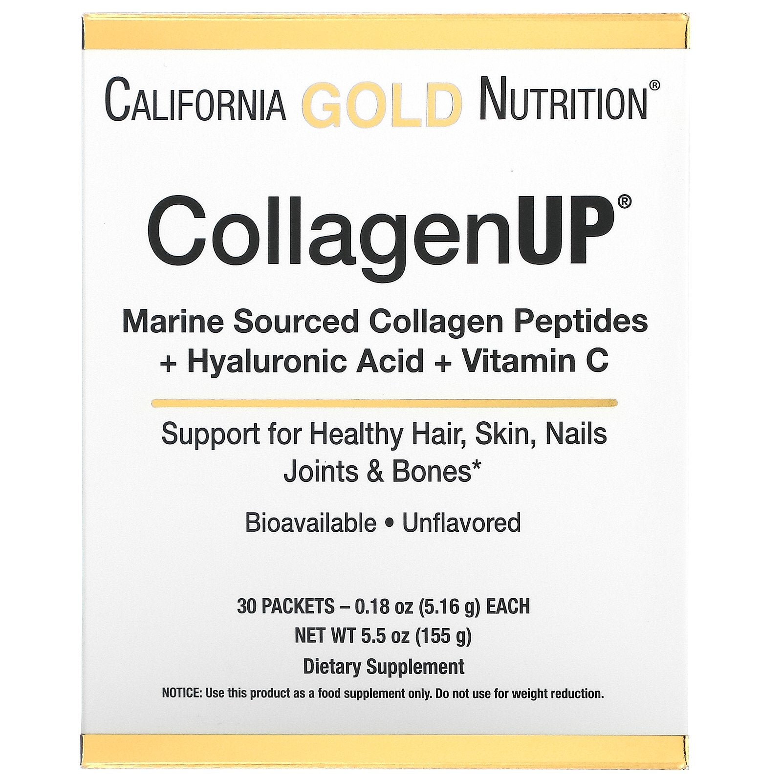 California Gold Nutrition, Collagenup, Marine Hydrolyzed Collagen + Hyaluronic Acid + Vitamin C, Unflavored, 0.18 Oz (5.16 G) Each