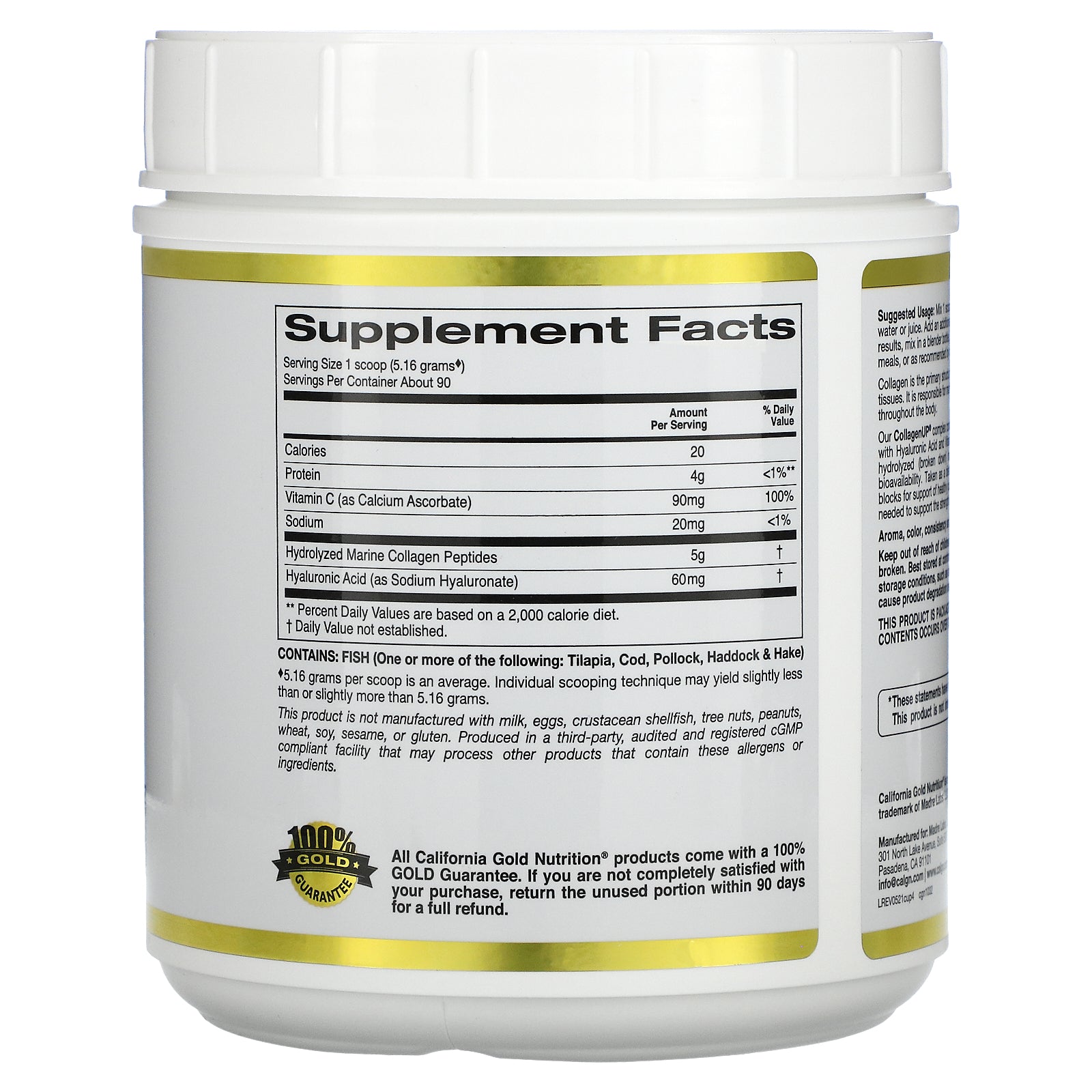 California Gold Nutrition, Collagenup, Marine Hydrolyzed Collagen + Hyaluronic Acid + Vitamin C, Unflavored
