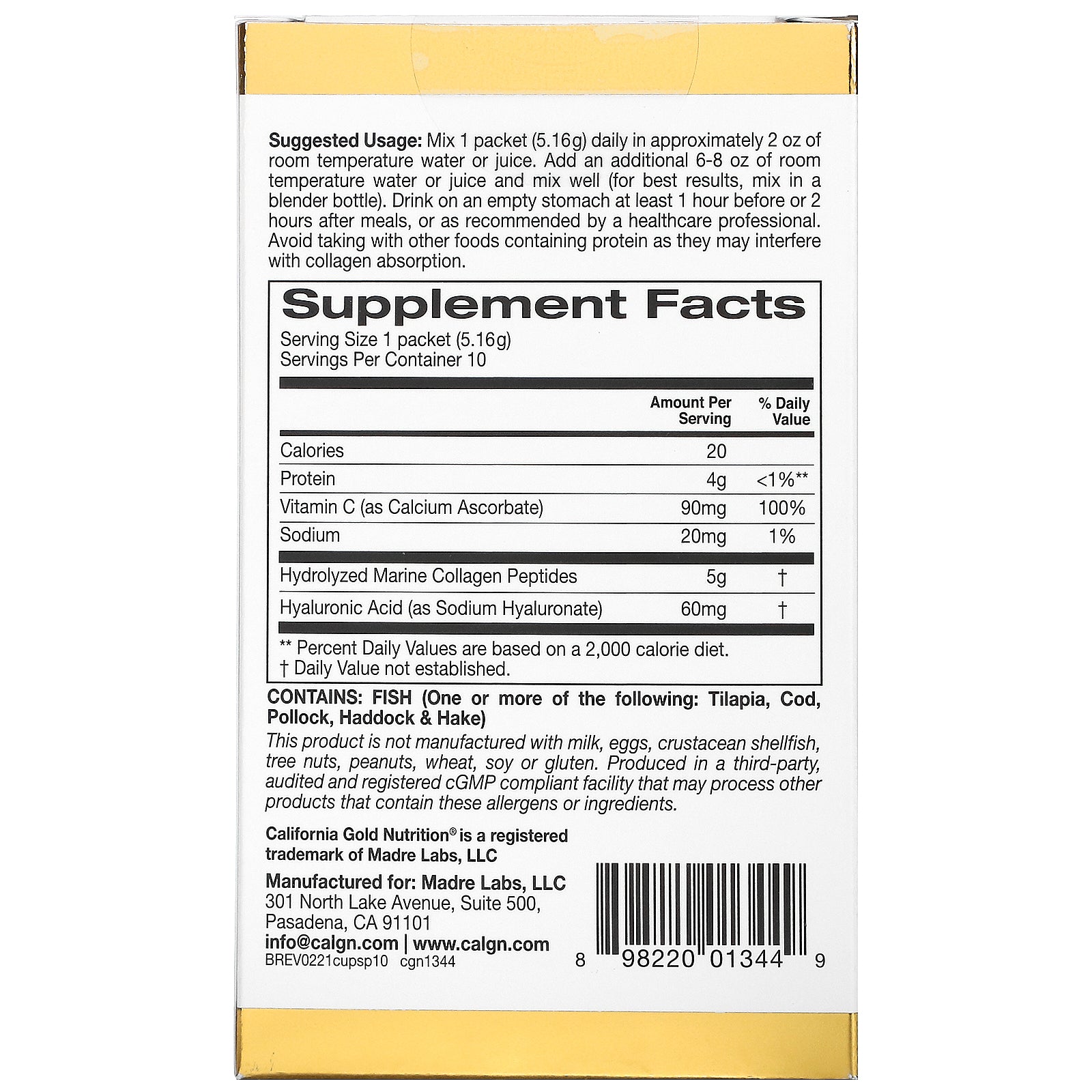 California Gold Nutrition, Collagenup, Unflavored, 0.18 Oz (5.16 G) Each