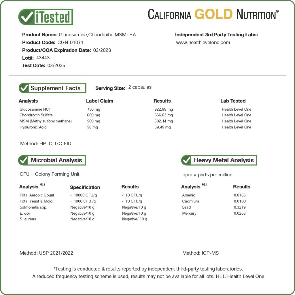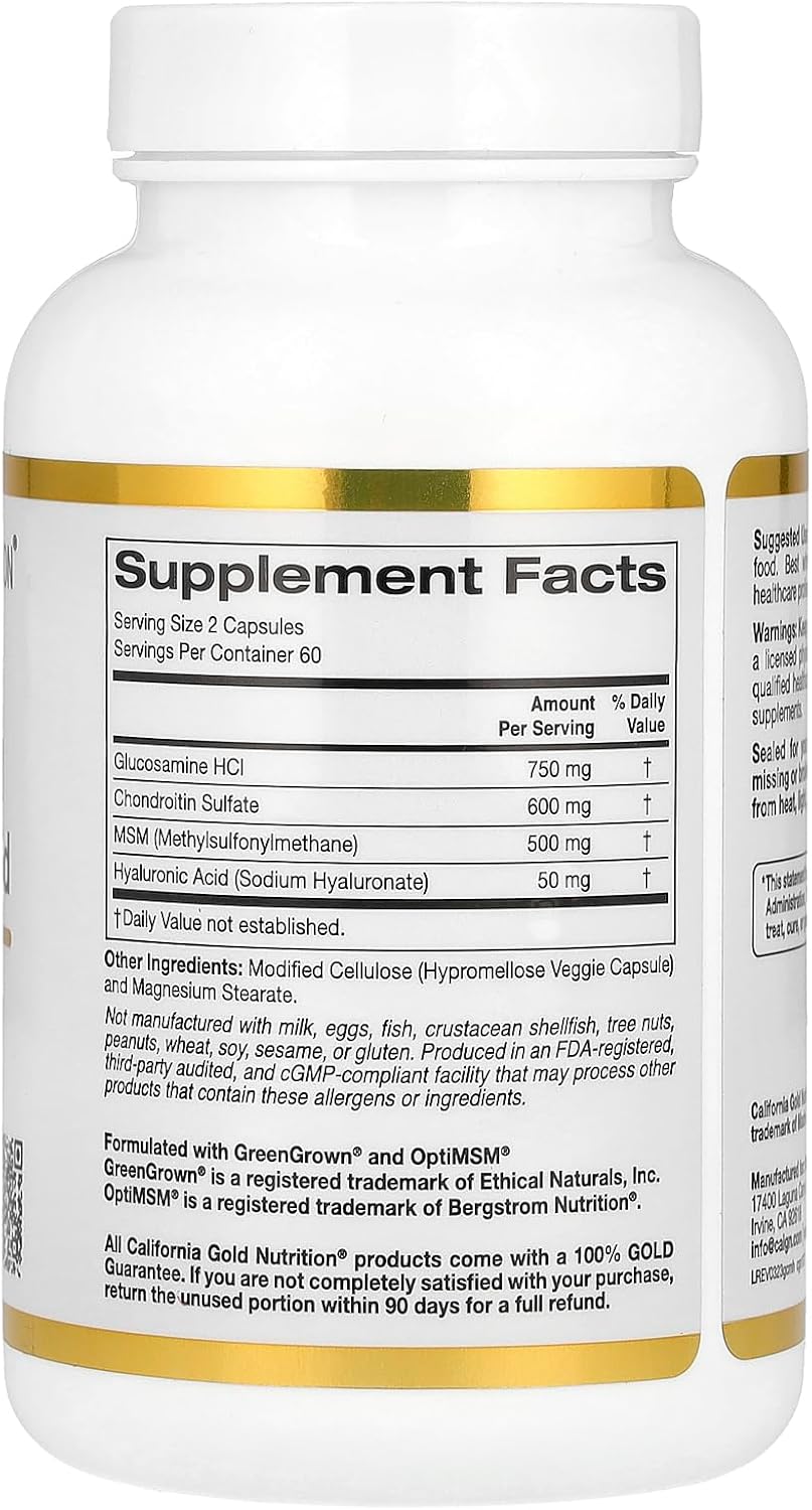 California Gold Nutrition Glucosamine, Chondroitin, Msm Plus Hyaluronic Acid, 120 Veggie Caps