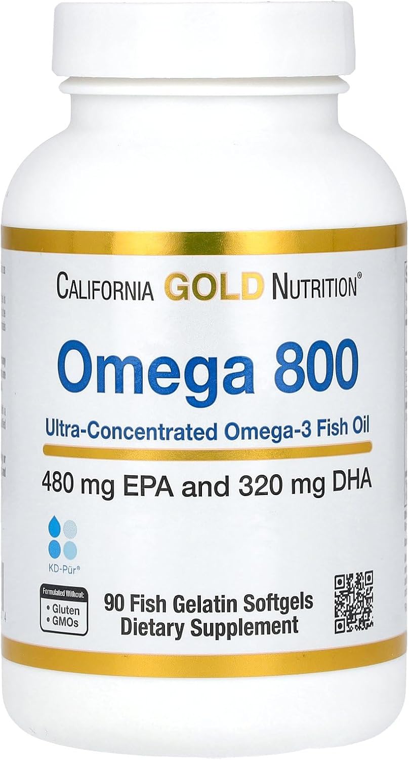 California Gold Nutrition Omega 800 Ultra-Concentrated Omega-3 Fish Oil, Kd-Pur Triglyceride Form, 90 Fish Gelatin Softgels (1,000 Mg Per Softgel)
