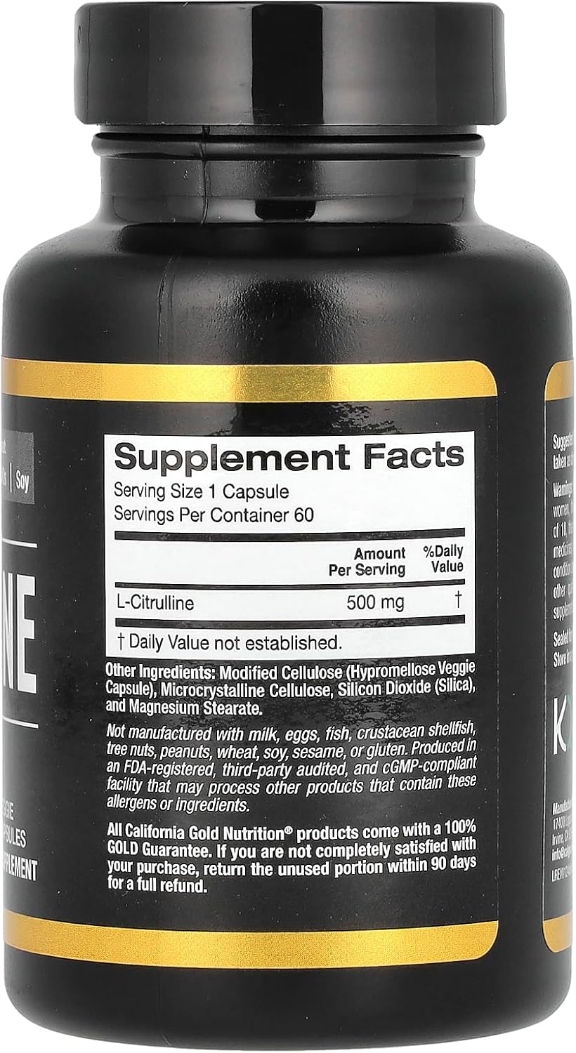 About this item Supports Cardiovascular Function. Featuring 500 mg high quality L-Citrulline. Suitable for Vegans and Vegetarians. Formulated without Gluten, GMOs, or Soy Produced in a 3rd Party Audited cGMP Registered (Certified) Facility › See more product details,Supports Cardiovascular Function,Featuring 500 mg high quality L-Citrulline,Suitable for Vegans and Vegetarians,Formulated without Gluten, GMOs, or Soy,Produced in a 3rd Party Audited cGMP Registered (Certified) Facility