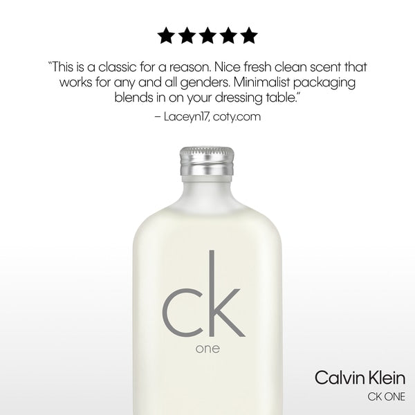 Product Information:CK One embodies a universal spirit for a diverse world. It is an iconic fragrance that is unapologetically bold, yet exudes youthful, fresh simplicity. Celebrating individuality and unity, this fragrance evokes the excitement of limitless opportunity,Scent:Fresh,Features:THE SCENT Bringing together refreshing notes of green tea, papaya, and bergamot. Perfectly balanced with soft accents of nutmeg, violet, cardamom, and rose. Compelling and dynamic, CK One is a dialogue between the masculine and feminine. CK One is revolutionary, rejecting traditional gender stereotypes and harmonizing feminine floral and masculine musk into one unisex scent, appealing to men and women alike. This fragrance carries fresh notes of green tea while embracing the sweetness of amber and musk,Product Specification:Product code: 362665