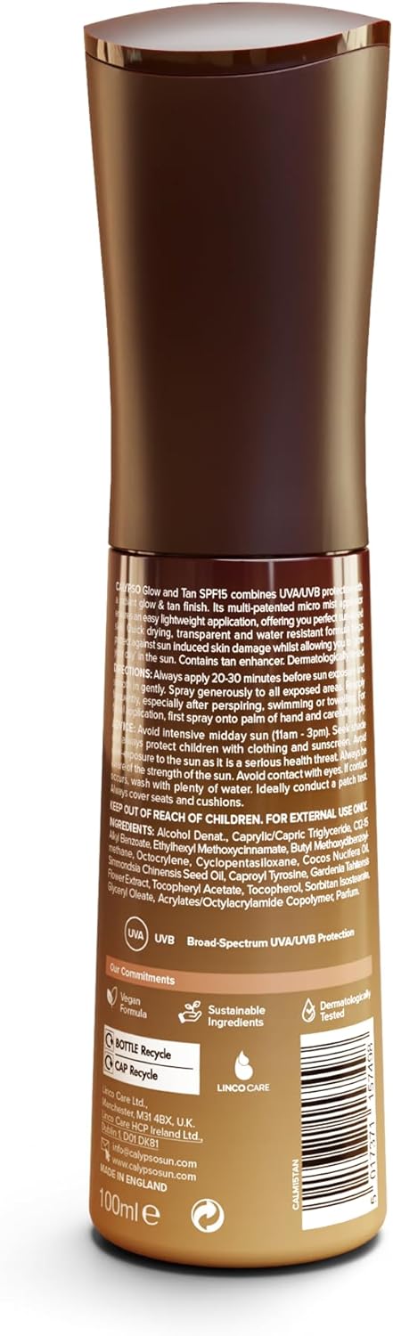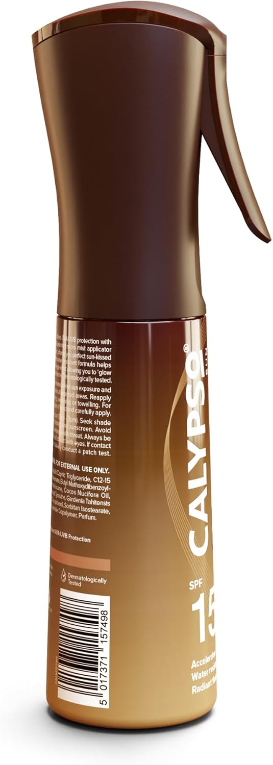 Calypso Glow And Tan Mist Spf 15, Bronzing Tan Enhancing Oil With Accelerator, Water Resistant, Sun Spray, Medium Uva & Uvb Protection, 100Ml