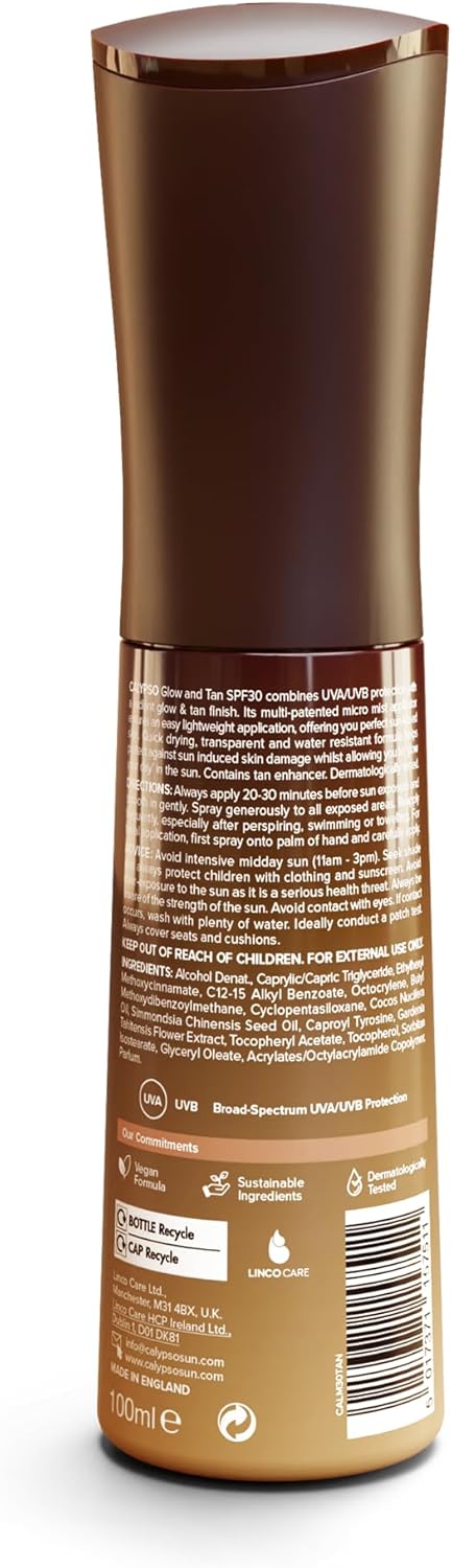Calypso Glow And Tan Mist Spf 30, Bronzing Tan Enhancing Oil With Accelerator, Water Resistant, Sun Spray, High Uva & Uvb Protection, 100Ml