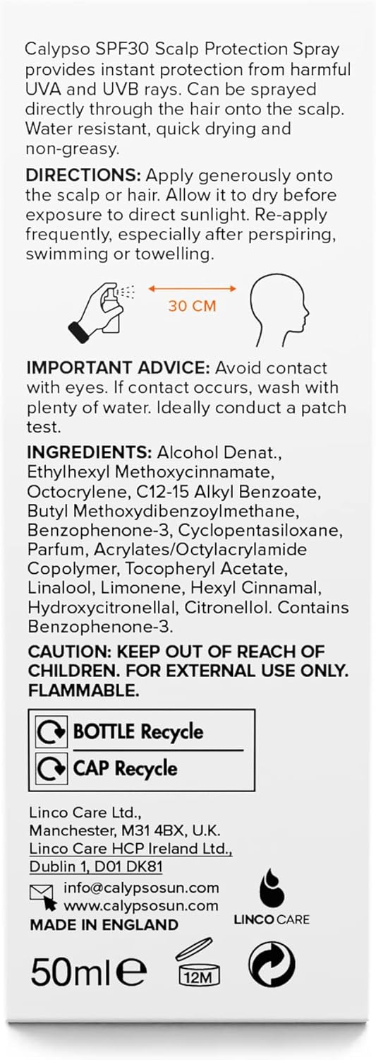 Calypso Hair & Scalp Protection Spray Spf30 Non Greasy High Protection Uva And Uvb, 50Ml