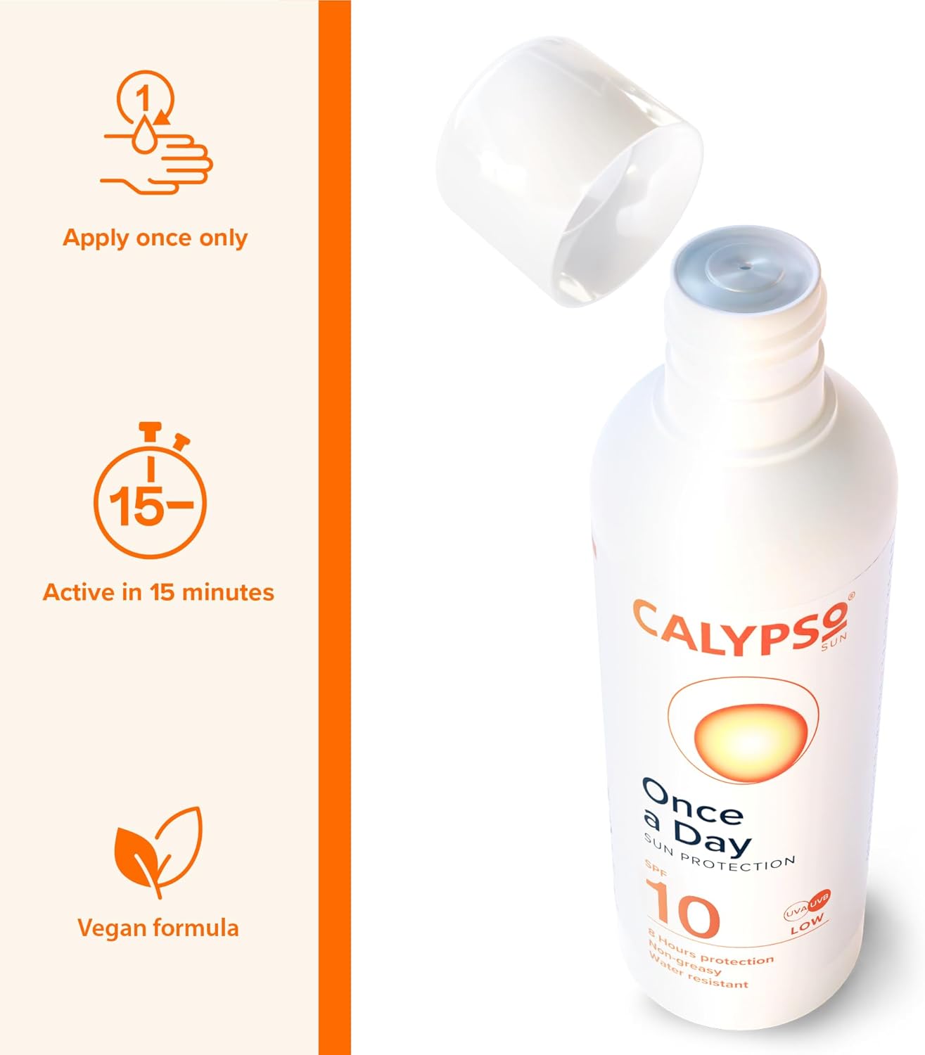 Calypso Once A Day Sun Protection Gel Spf20 And Spf10 - Multipack 2 × 200Ml | 8 Hours Sunscreen, Uva And Uvb Protection, Water Resistant, Non-Greasy