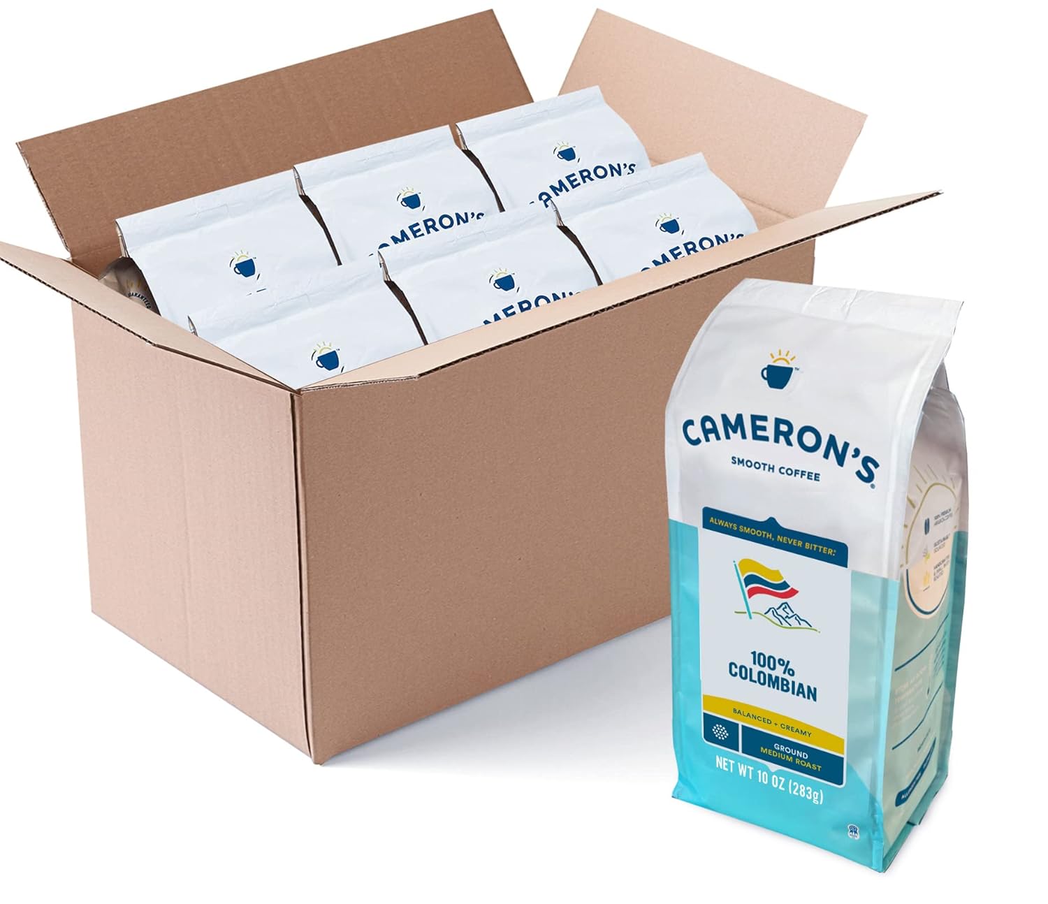 Cameron'S Coffee Roasted Ground Coffee Bag, 100% Colombian, 10 Ounce, Pack Of 6