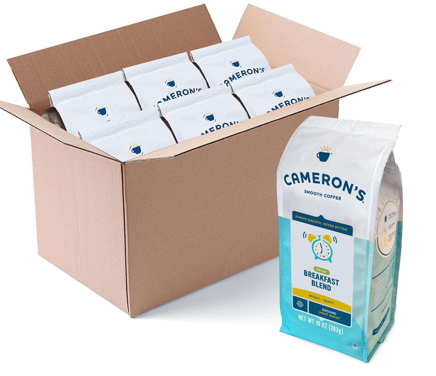 Cameron'S Coffee Roasted Ground Coffee Bag, Decaf Breakfast Blend, 10 Ounce, Pack Of 6