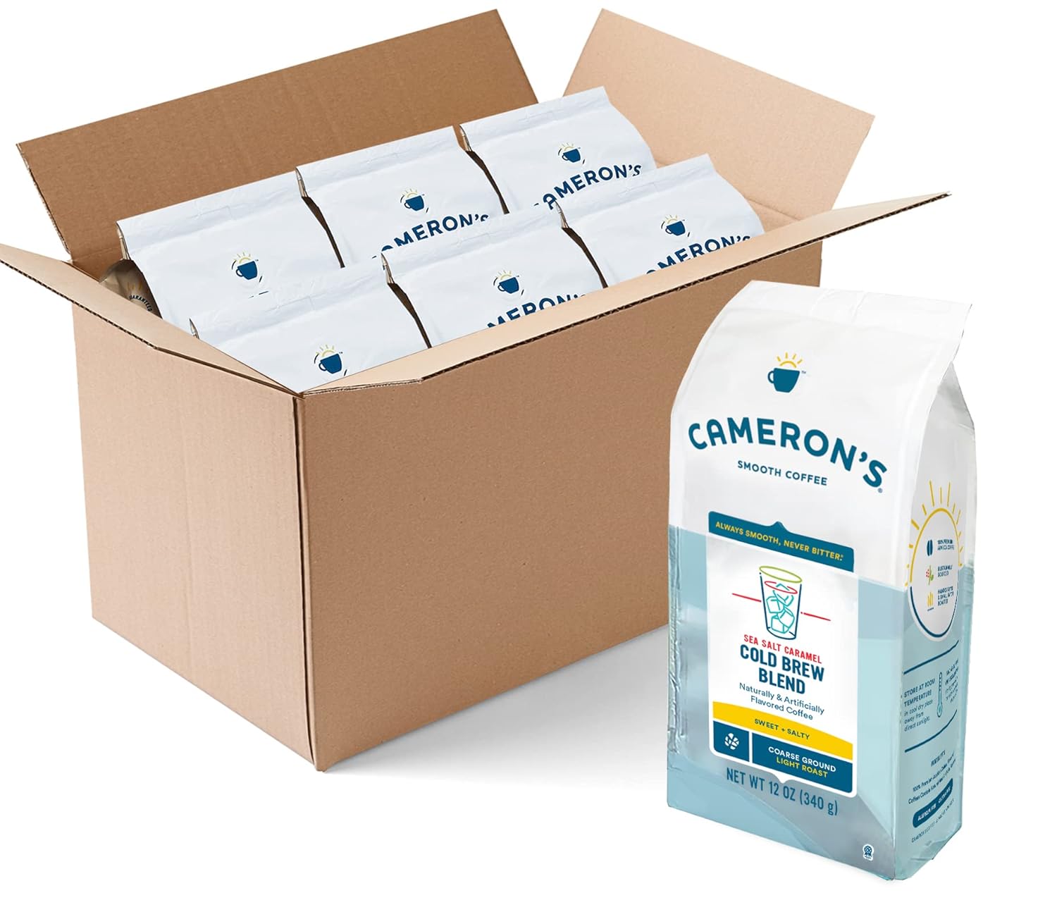 Cameron'S Coffee Roasted Ground Coffee Bag,Sea Salt Caramel Cold Brew, 12 Ounce Pack Of 6