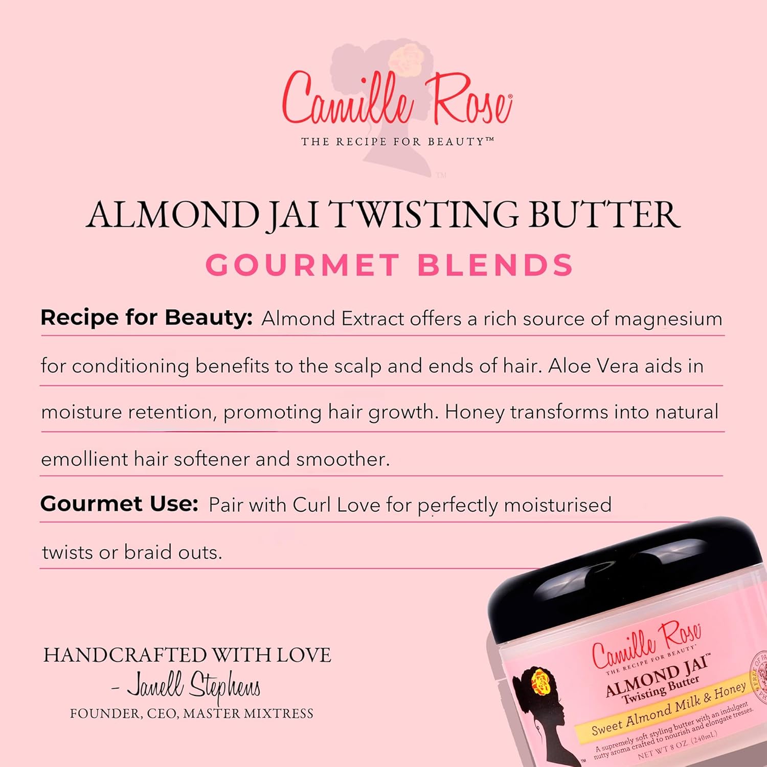 Camille Rose Almond Jai Leave-In Twisting Hair Styling Butter, Nourish And Soften, Sweet Almond Milk And Honey, 240 Ml (Pack Of 1)