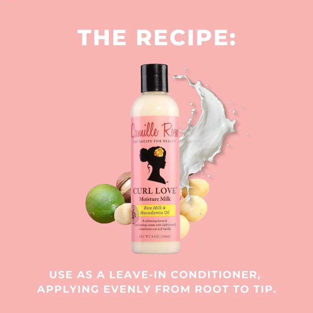 Camille Rose Curl Love Moisture Milk, Leave-In Conditioning Cream For Curls And Coils, Nourish And Strengthen, Macadamia Nut & Vanilla, 240 Ml (Pack Of 1)