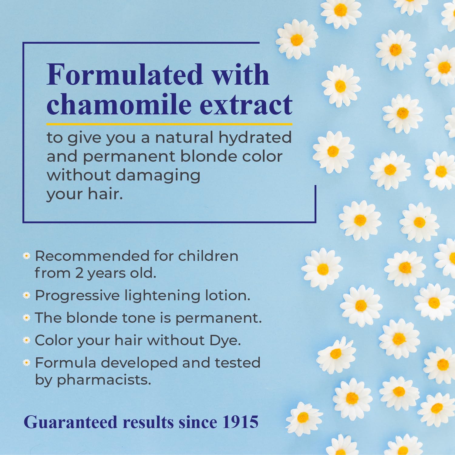 The Power of Chamomile: Instead of relying on dangerous chemicals, our hair lightener is rich in chamomile extract, a rich and natural ingredient that can help to lighten dark blonde or natural brown hair up to 4 tones! The scent is subtle but pleasant so you and your kiddo enjoy a great experience