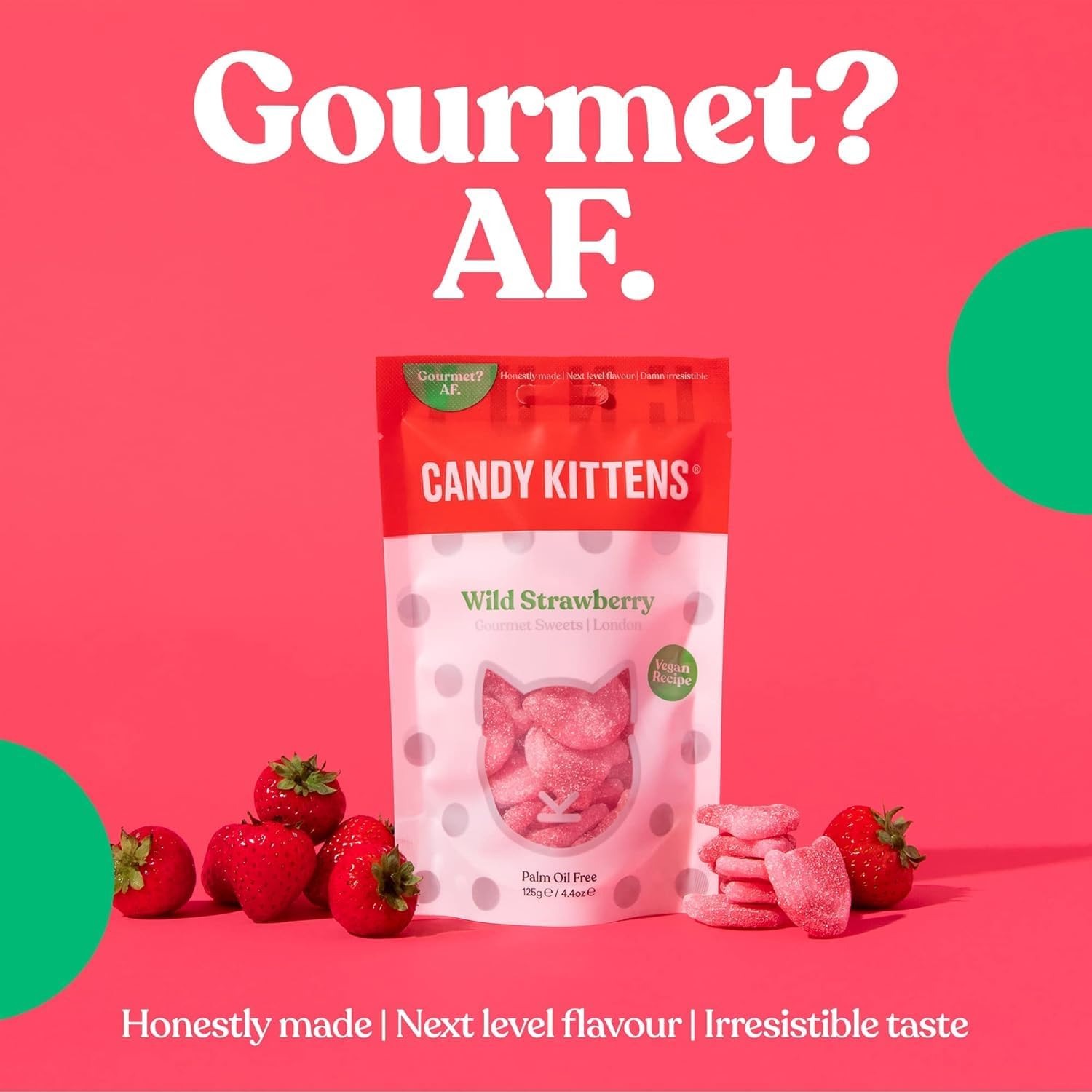 About The Product : A BURST OF WILD STRAWBERRY: How wild do you want to be Candy Kittens Wild Strawberry vegan sweets bring full-on Friday night vibes to your day. Ideal for vegan snacks, Christmas sweets for kids, or sweets for party bags, these treats are a fruity delight!