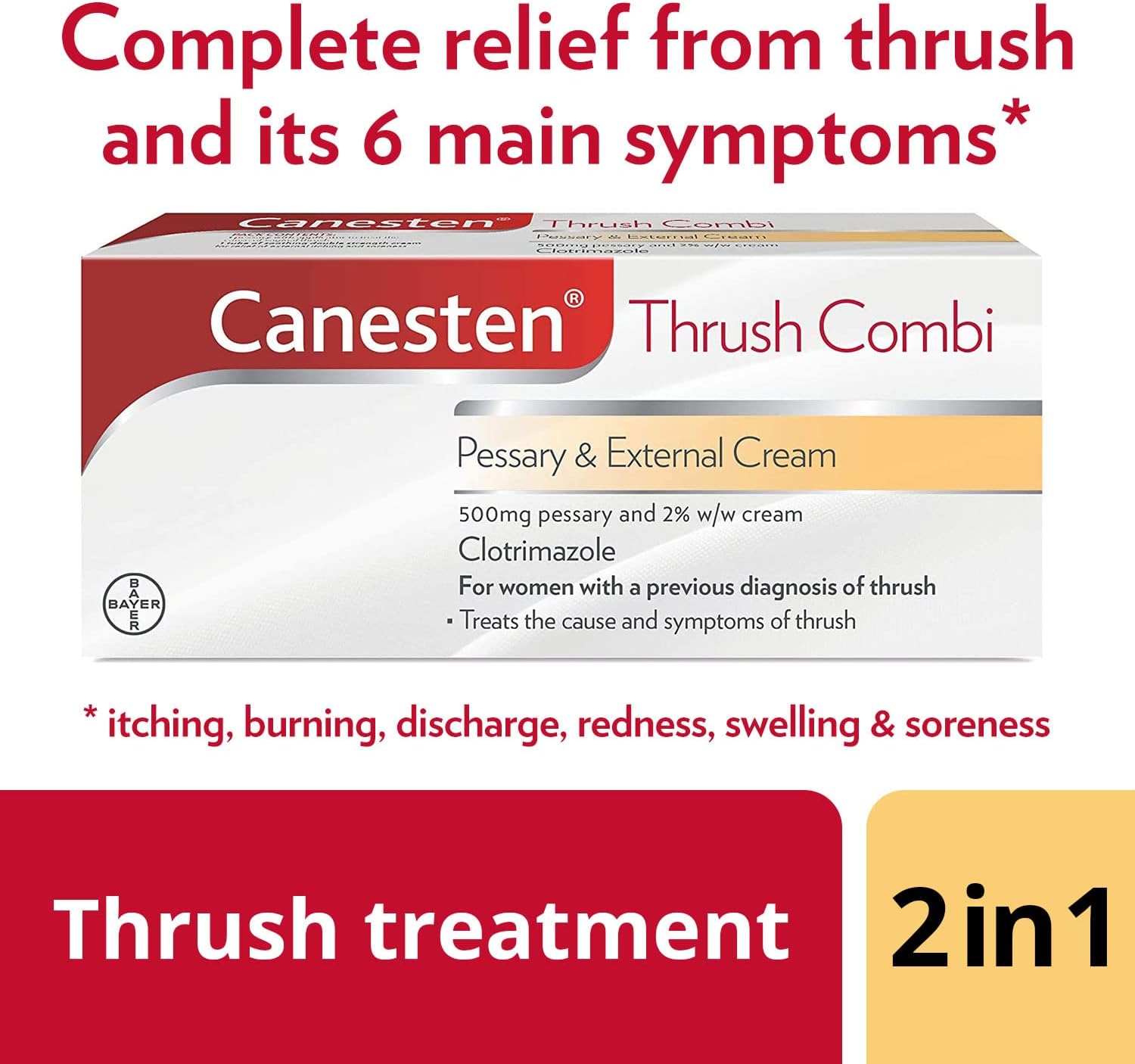 Canesten Thrush Combi Pessary & External Cream For Thrush Treatment | Clotrimazole | Two-Step Complete Relief Thrush Treatment