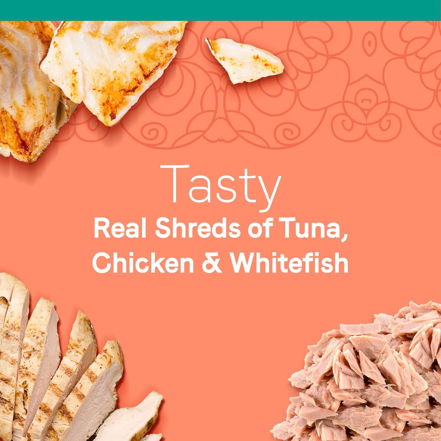 Nutritionally dense and moist wet cat food is a great source of tasty hydration for cats. Crafted with real tuna and real salmon, paired with whole ingredients like chicken, whitefish, potatoes, peas and carrots