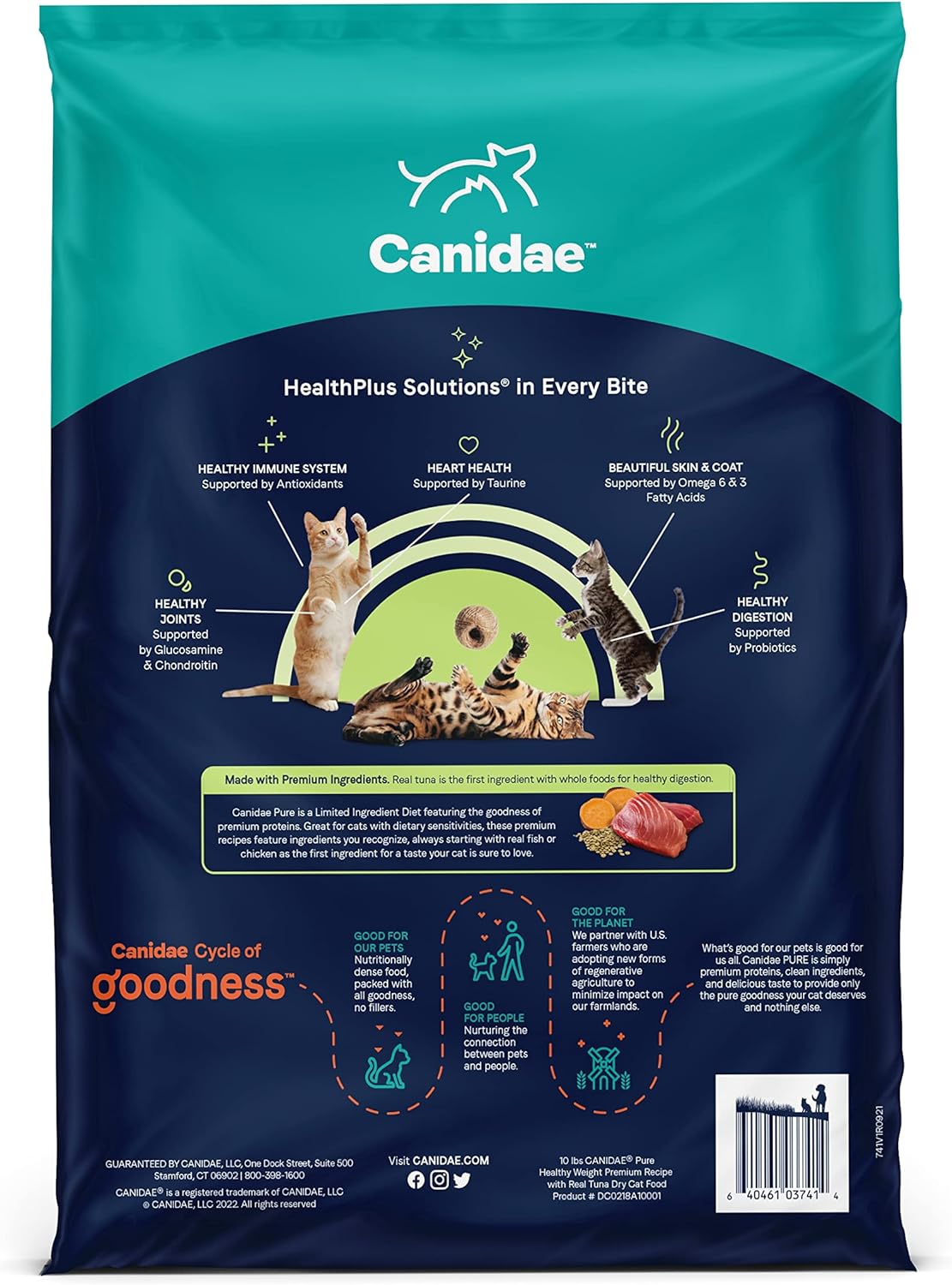 CANIDAE Premium Dry Cat Food and Wet Cat Food Bundle, Healthy Weight Tuna Recipe- 5 Pound Bag, Shreds with Tuna, Chicken and Mackerel in Broth- 2.46 Ounce Cans (Pack of 24), Grain Free