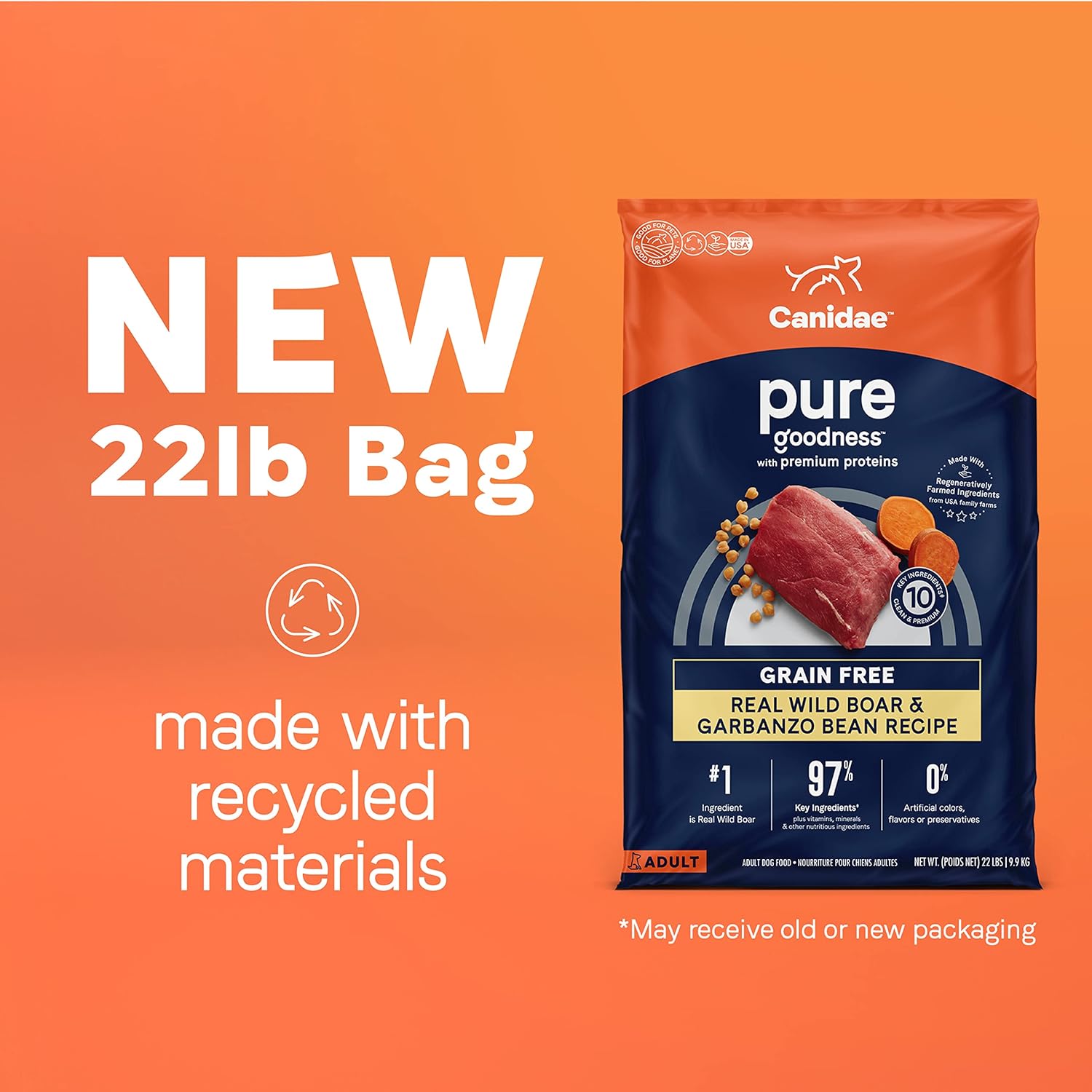 Canidae Pure Grain Free Adult Dry Dog Food, Real Wild Boar & Garbanzo Bean, 22 Lbs