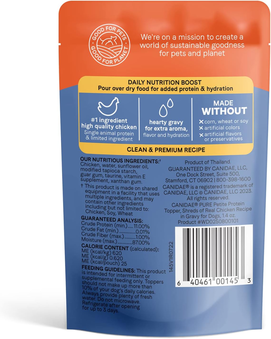 Canidae Pure Petite Protein Topper Wet Dog Food For Small Breeds, Shreds Of Real Chicken In Gravy Recipe, 1.4 Oz. (Case Of 12)
