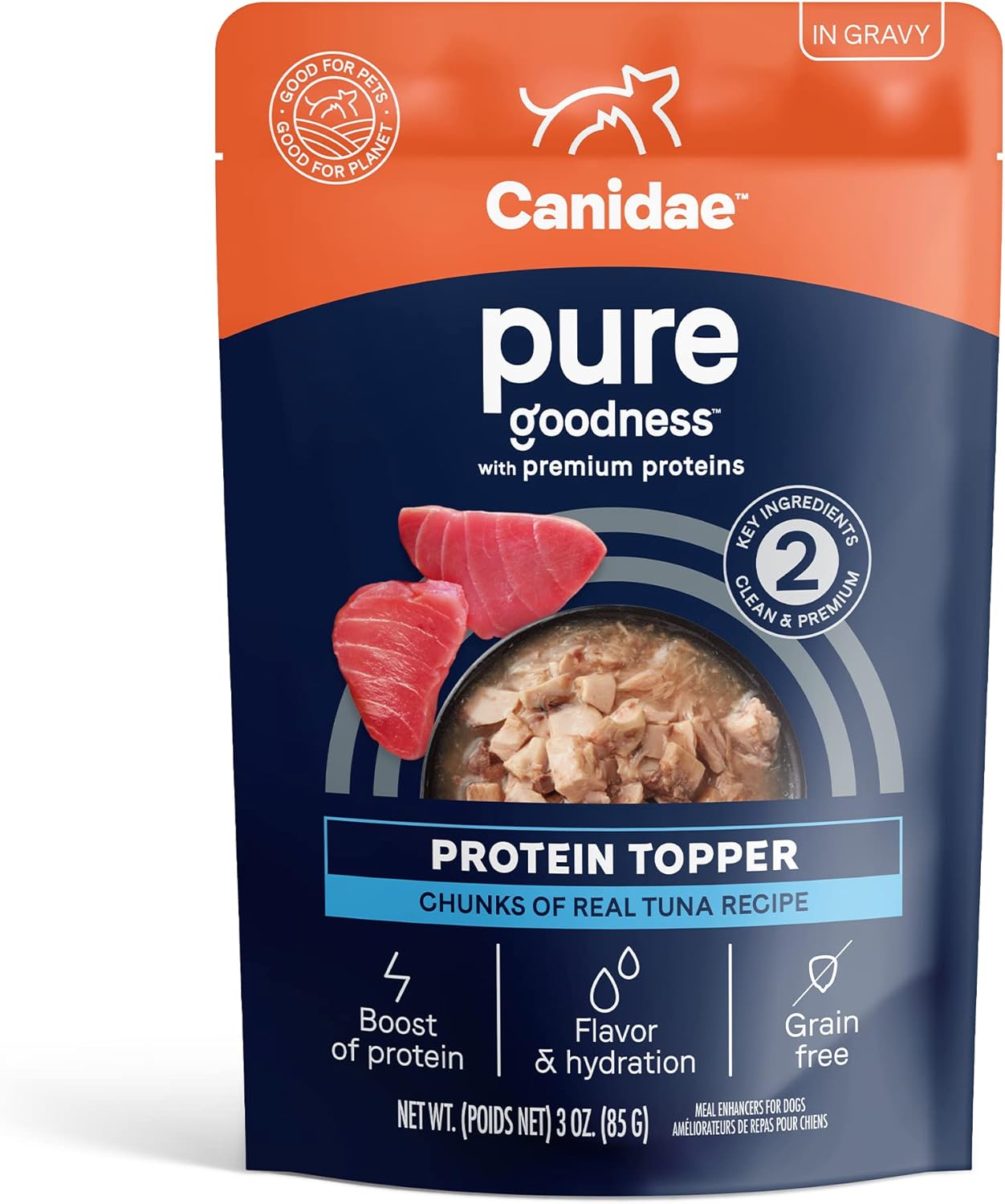 Add A Boost Of Protein, Flavor And Hydration With Canidae'S Pure Protein Toppers. Made With Chunks Of Real Tuna, This Is A Single Animal Protein Source Recipe With Only 2 Key Ingredients. Made Without Corn, Wheat Or Soy, And No Artificial Colors, Flavors Or Preservatives