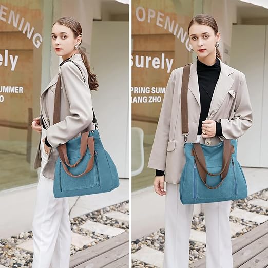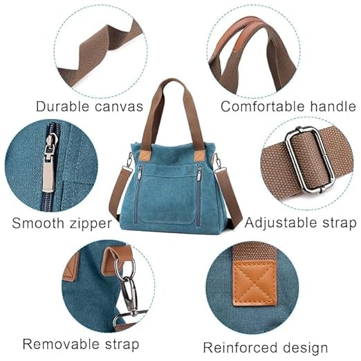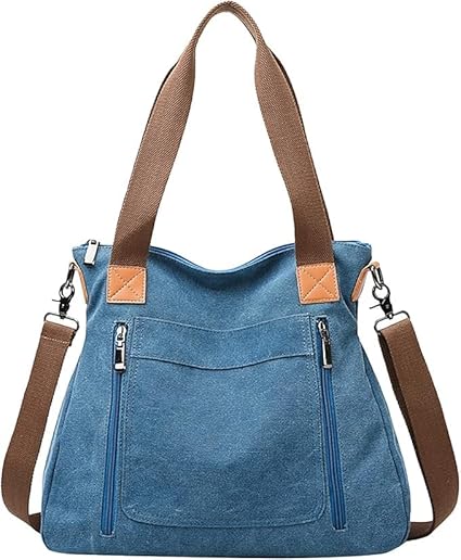 Canvas Tote Bag for Women – Large Capacity Shoulder Handbag with Detachable Strap, Hobo-Style Travel & Shopping Purse (Blue)