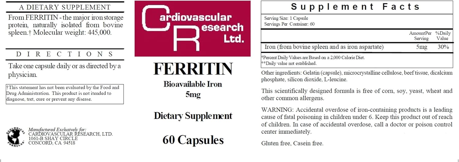 Cardiovascular Research Ferritin 5 Mg Tamper Resistant Shipping Box Iron Supplement 120 Count