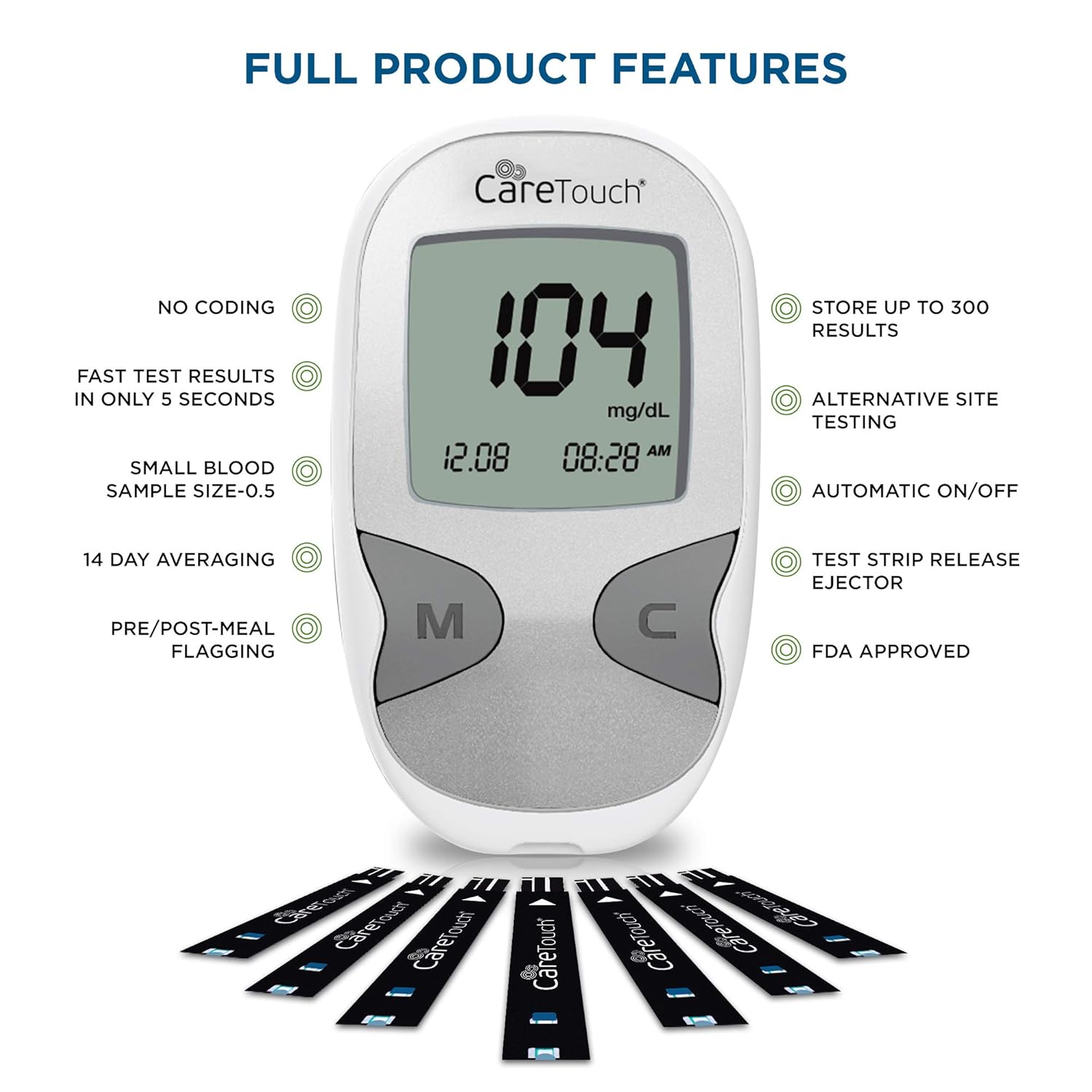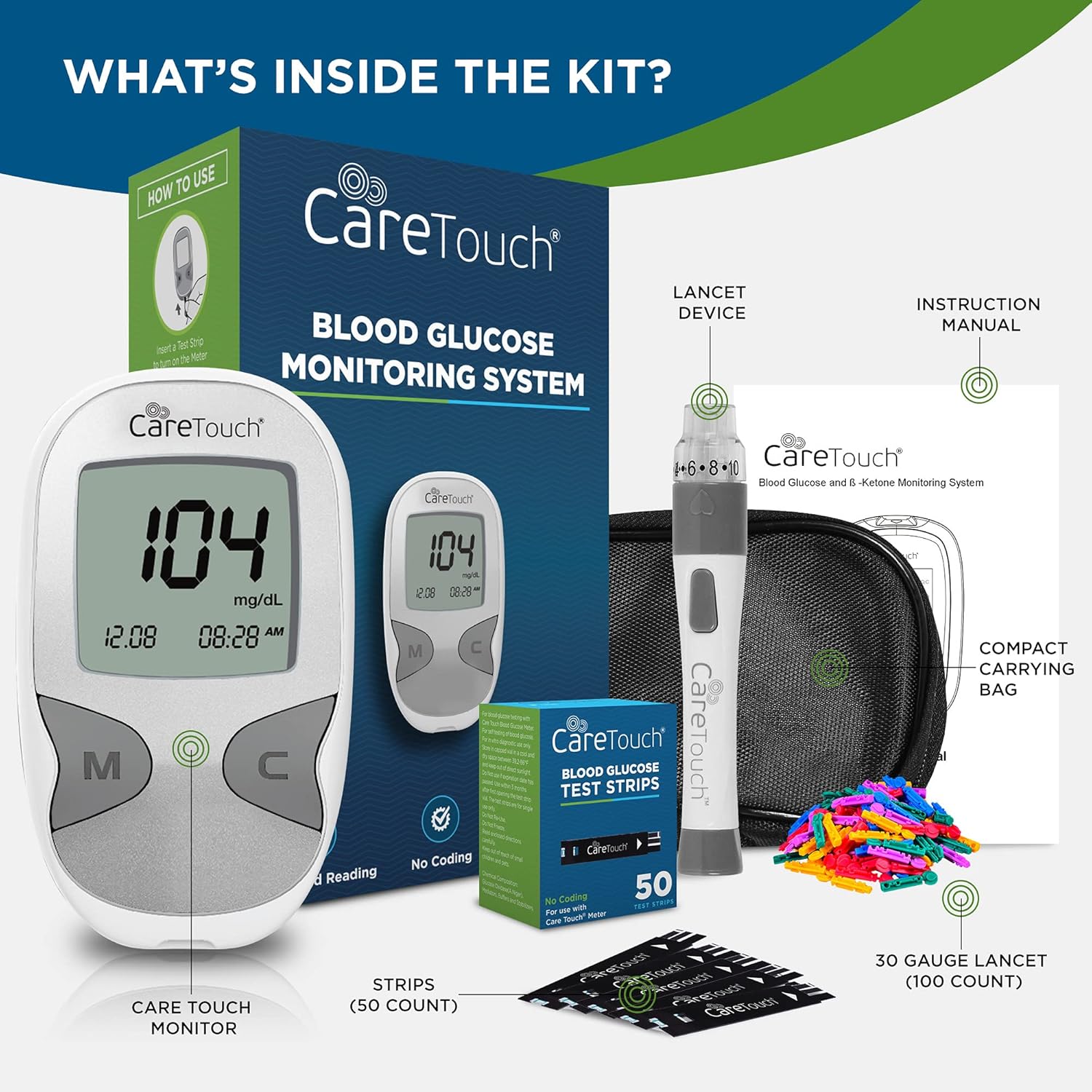 Care Touch Blood Glucose Monitor Kit - Diabetes Testing Kit + 1 Glucometer, 50 Blood Sugar Care Touch Test Strips, 1 Lancing Device, 100 Care Touch Lancets, Travel Case For Blood Glucose Meter