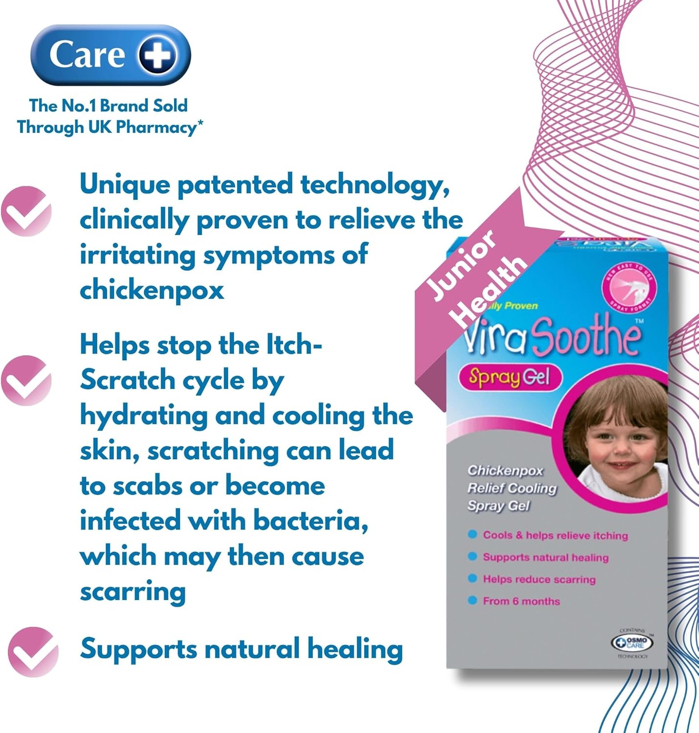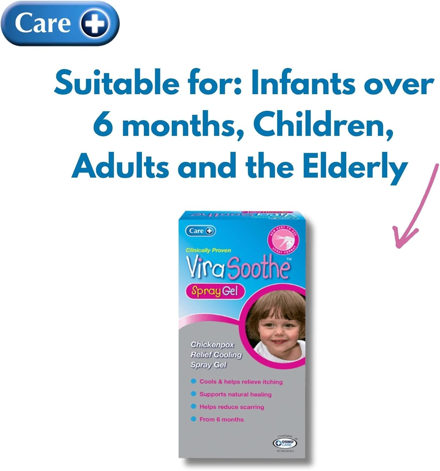Care ViraSoothe Spray Gel 60g, Chickenpox Relief, Cools + Soothes Skin, 6+ Months, Supports Natural Healing, Helps Stop The Itch, Clinically Proven Effective Relief, Reduces Long-Term Scarring : Amazon.co.uk: Health & Personal Care