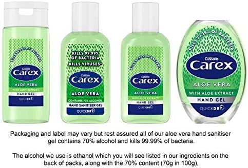 Carex Aloe Vera Antibacterial Hand Sanitiser Gel, Anti Viral Action, 70 Percent Alcohol, Cleans, Cares And Protects, Bulk Buy, Pack Of 12 X 50 Ml