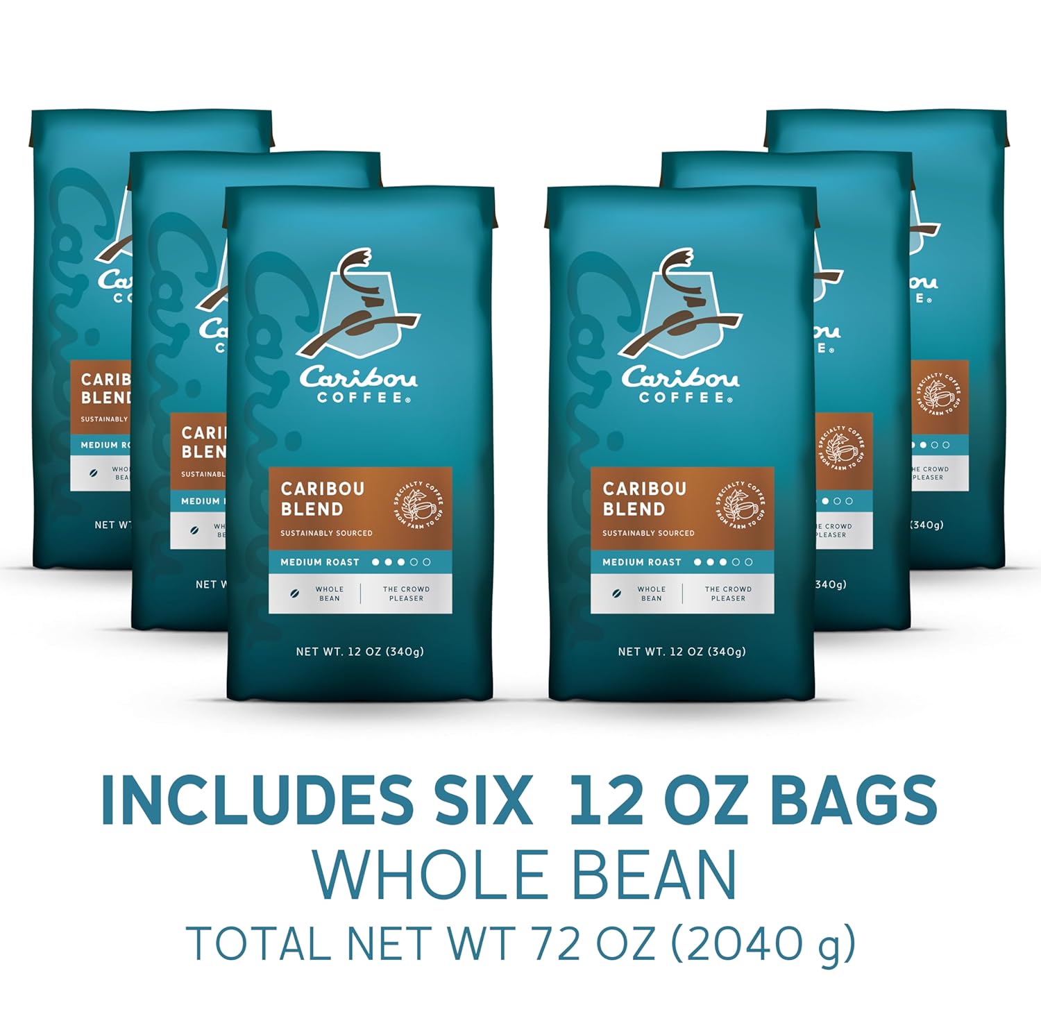 Caribou Coffee, Medium Roast Whole Bean Coffee - Caribou Blend 72 Ounces (6 Bags Of 12 Ounces)