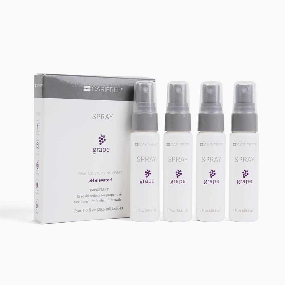 [MOISTURISE YOUR MOUTH]: CariFree’s oral moisturizing Spray (CTx2 Spray) helps to soothe and moisten your mouth. Patients with bad breath (halitosis) also benefit from the regular use of our CariFree Spray. NEW! LARGER 1 OZ SPRAY BOTTLE! Each box contains four 1 fl oz spray bottles[RECOMMENDED FOR ALL AGES]: We understand the struggle that some of us go through in order to make sure our kids practice proper dental hygiene. Our scientifically developed CariFree oral moisturizer spray is meant to help in this process. Use as needed after meals to boost your pH or in the evening before bed[NON-STAINING AND FLUORIDE FREE]: We create our line of dental products with optimal oral health formulas to ensure effective results. Our Oral Moisturising Spray is fluoride-free and non-staining[PATENTED pH+ TECHNOLOGY]: Studies suggest that decay is a function of low pH. Maintaining an elevated or neutral pH balance helps to keep your tooth enamel and smile healthy. CariFree Spray contains patented pH+ technology to elevate the pH in your mouth, keeping it balanced. U.S. Patent NO. 9,427,384 & 10,143,633