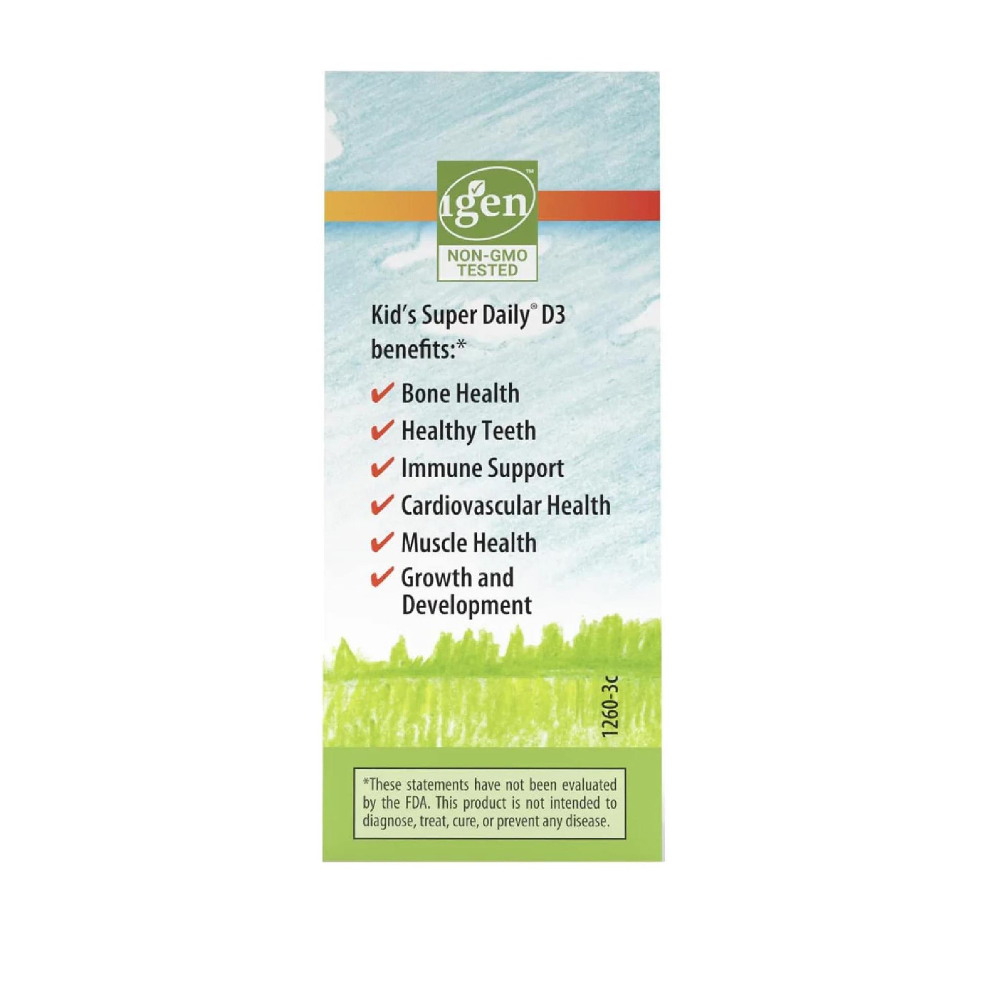 2 >BUILD STRONG BONES - Kid's Super Daily D3 400 IU (10 mcg) drops help a kid's body to effectively absorb calcium, which is essential for bone health