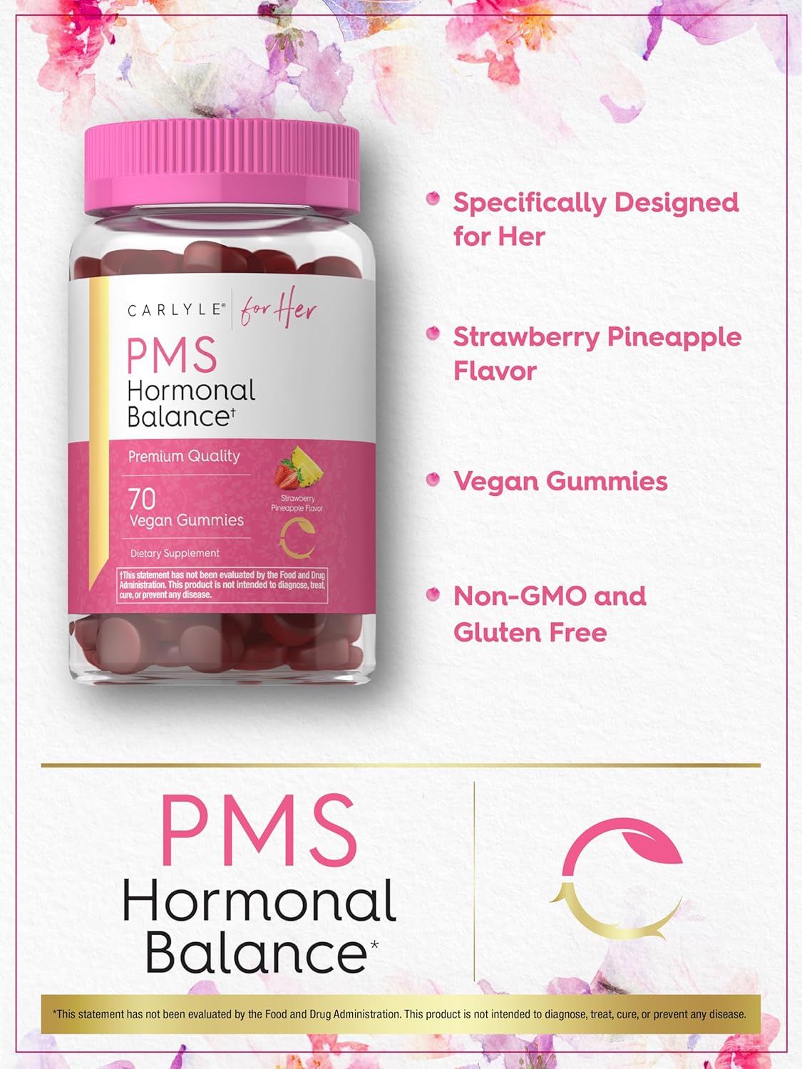 Carlyle Hormonal Balance For Women & Pms Supplement | 70 Gummies | Vitamin Complex | With Iron | Vegan, Non-Gmo, Gluten Free | For Her