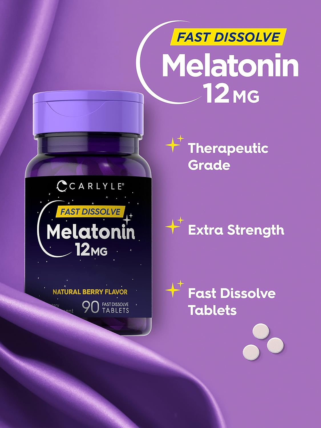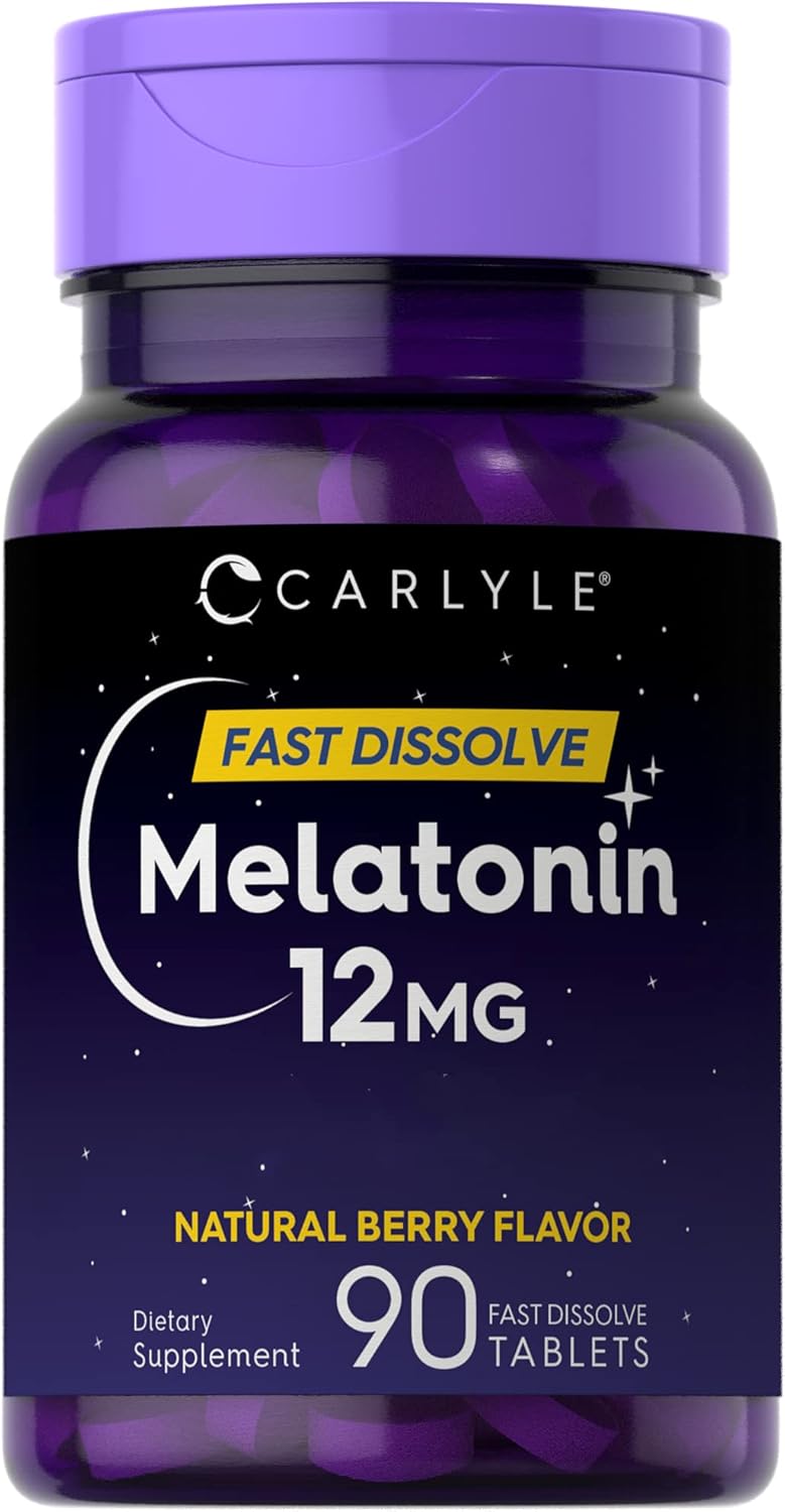 Carlyle Melatonin 12 Mg Fast Dissolve 90 Tablets | Natural Berry Flavor | Vegetarian, Non-Gmo, Gluten Free