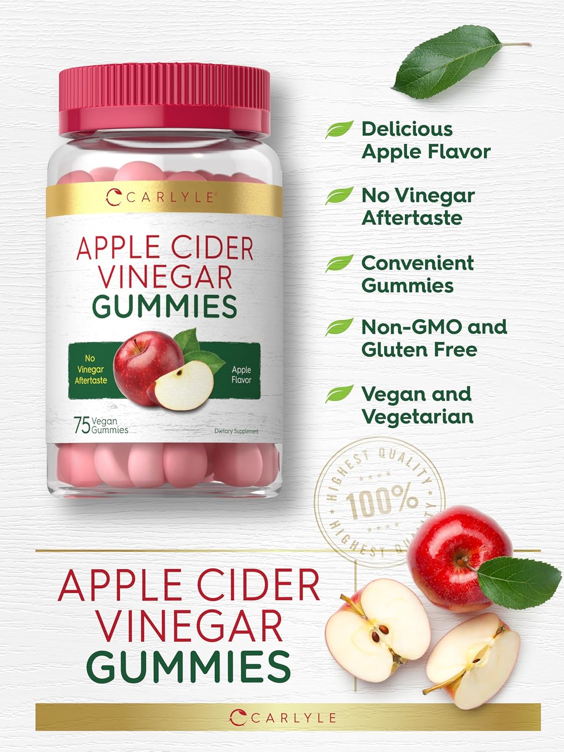 Carlyle Vegan Apple Cider Vinegar Gummies | 75 Count | Apple Flavor | Non-Gmo, Gluten Free | Acv Supplement