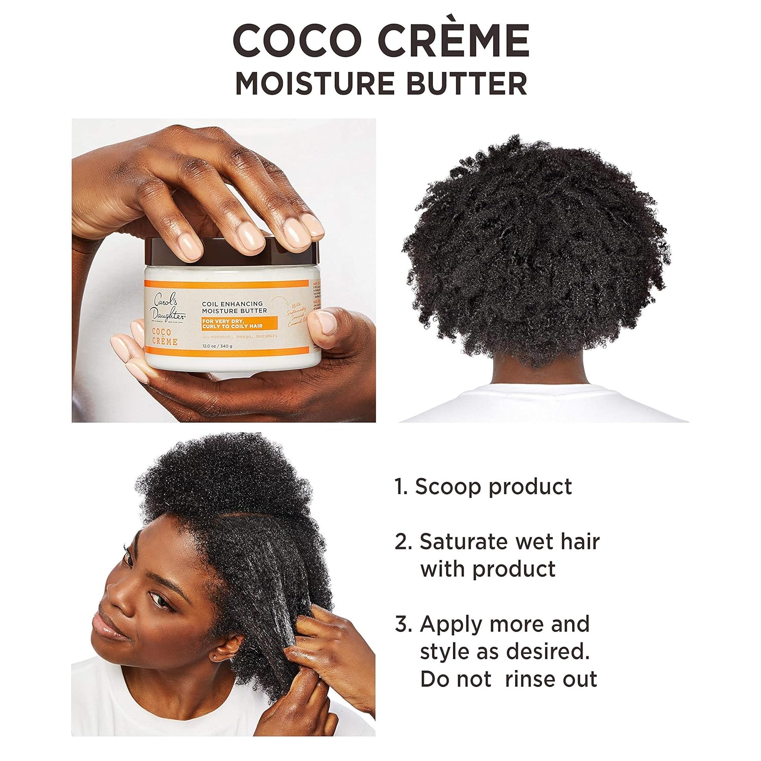 Carol'S Daughter Coco Creme Coil Enhancing Moisture Butter, With Coconut Oil And Mango Butter, For Very Dry Curly Hair, Paraben And Silicone Free, 12 Oz