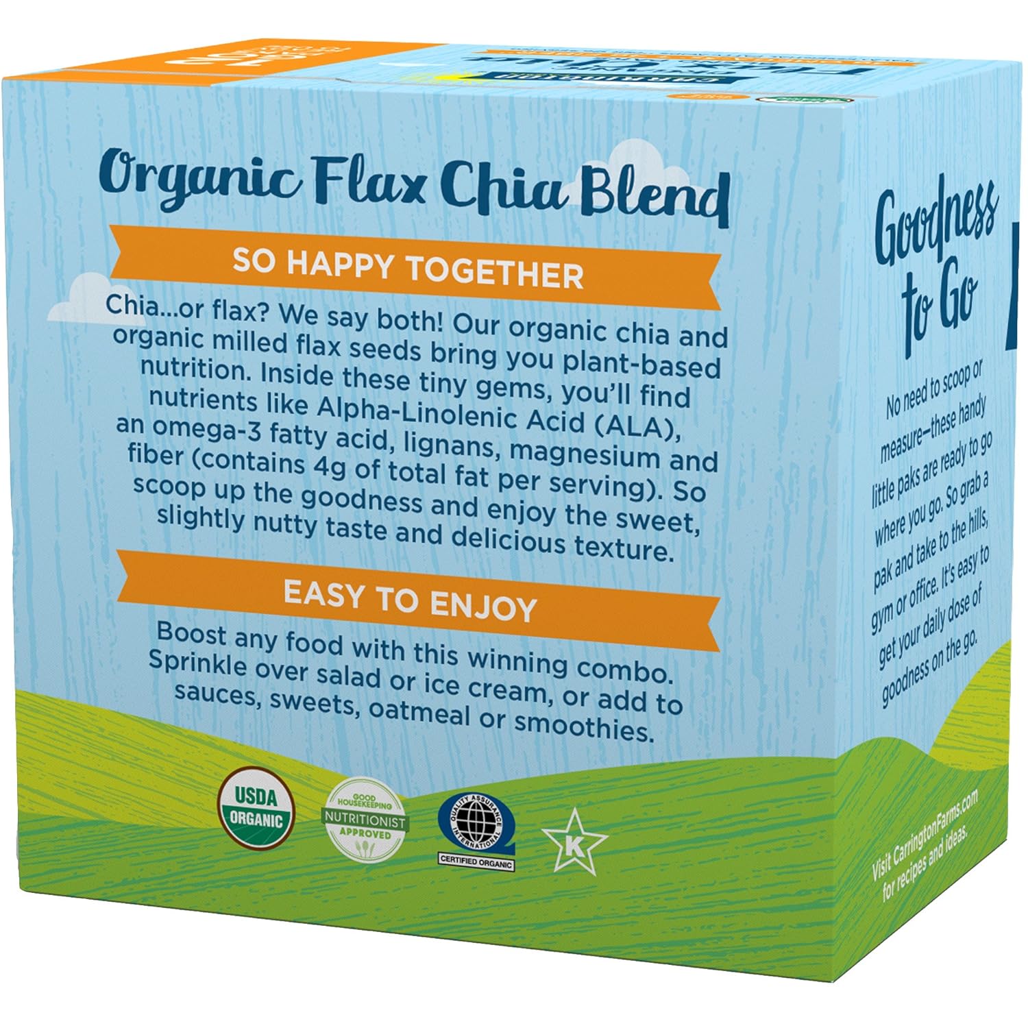 Carrington Farms Organic Flax Chia Paks, 5.08 Oz 12 Packets (Pack Of 6), Packaging May Vary