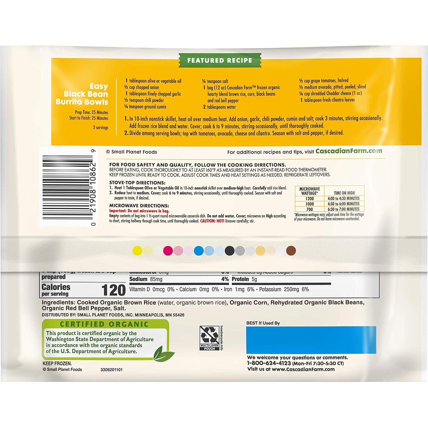 Product Description Spend less time prepping and more time around the table with Cascadian Farm Organic Hearty Blend With Rice and Beans. This frozen vegetable and rice blend features organic brown rice, organic black beans, organic corn and organic red bell pepper. Serve this hearty rice and frozen veggie blend as a tasty side dish on busy weeknights or use it as a filler for burritos. Follow the instructions on the packaging to heat this frozen vegetable blend on the stovetop or in the microwave. Pack more of what you need into every meal with our simply delicious organic frozen vegetables. Always Organic. Never Ordinary. That’s been our mantra since 1972. Since then, we’ve remained a producer of organic cereals, fruits, vegetables, granola and snack bars. Cascadian Farm is a pioneering supporter of farmers who use practices that regenerate the land and their communities. Cascadian Farm's love of delicious, uncomplicated food comes from what Mother Nature has already perfected: wholesome, organic ingredients. Always Organic. Never Ordinary. Cascadian Farm's love of delicious, uncomplicated food comes from what Mother Nature has already perfected: wholesome, organic ingredients. Always Organic. Never OrdinaryRICE AND BEANS: Cascadian Farm Hearty Blend features organic brown rice, organic black beans, organic corn and organic red bell pepperCERTIFIED ORGANIC: These Cascadian Farm frozen vegetables are delicious and organicUSE THEM TONIGHT: Cascadian Farm frozen veggies are great for side dishes and cookingQUICK AND EASY: Follow the instructions on the packaging to heat this frozen brown rice blend
