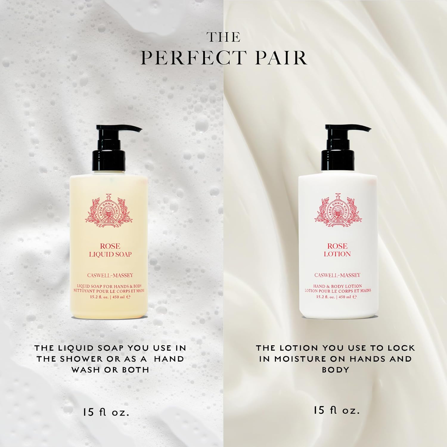 Caswell-Massey Rose Liquid Hand Soap & Moisturizing Body Wash With Pump, Hydrating Plant-Based Skin Cleanserfor Men & Women, Paraben And Phthalate Free, 15.2 Fl Oz