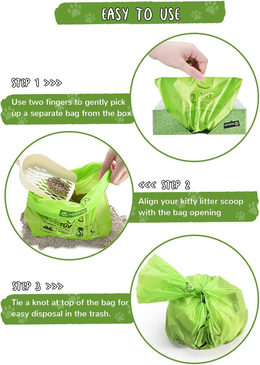 Composting Litter Bags, Plastic-Free: Our Cat Litter Bags Are Made From Corn-Based And Plastic-Free Materials, Which Will Only Break Down Into Water, Co2 And Biomass. All You Need Is To Put These Cat Litter Bags For Poop Into Your Backyard Compost Bin