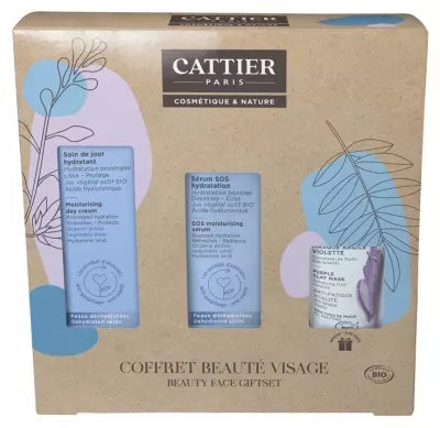 Cattier Organic Face Beauty Set 2023 Is A Set Of Moisturizing Face Cares, In Order To Give Radiance To Your Face. - Cattier Moisturising Day Cream Dehydrated Skin Organic 50Ml Is An Emulsion That Helps Maintain Optimal Hydration Throughout The Day. This Care Provides Your Skin With Double-Effective Hydration: Immediate And Prolonged. Its Formula Combines: Organic Active Vegetable Juice: 100% Active, This Juice Composed Of An Extract Of Organic Apricots And Aloe Vera Juice Rehydrated, Replaces The Water Of The Formula To Maximize Its Effectiveness. Organic Apricot Extract Is Naturally Rich In Moisturizing Sugars, Known To Help The Skin Maintain Optimal Hydration. Aloe Vera Juice, Rich In Moisturizing Agents, Is A Super Moisturizer That Softens And Protects The Skin. Hyaluronic Acid: A Powerful Moisturizing Active Ingredient With Immediate Action, It Is One Of The Main Constituents Of The Dermis And Epidermis. This 100% Natural, Low Molecular Weight Hyaluronic Acid Helps To Retain Water In The Skin And Maintain An Optimal Level Of Hydration. Organic Babassu Butter: With Protective And Film-Forming Properties, It Soothes, Softens And Protects The Skin From Dehydration. Organic Safflower Oil: Very Rich In Linoleic Acid, Which Is Involved In Regulating The Hydration Of The Epidermis. Its Fresh And Light Texture Upon Application Is Ultra-Comfortable On The Skin. Recharged With Water, The Skin Is Perfectly Quenched And Regains Radiance And Bounce. - Cattier Sos Moisturising Serum Dehydrated Skins Organic 30Ml Is A Hydration Booster Serum For The Skin. The Synergy Of Organic Active Vegetable Juice, Of Hyaluronic Acid And Fruits Sugars Offers To The Skin An Optimum Level Of Hydration: Immediate Hydration By Impregnation Of Superficial Layers Of The Epidermis: Dynamic Hydration By Participating To Restore The Barrier Function, And Long Duration Hydration By Improving The Water Reserves Of The Skin And By Limiting The Dehydration. Its Formula Associates: Organic Active Vegetable Juice: 100% Active, This Juice Composed Of An Extract Of Organic Apricot And Rehydrated Aloe Vera Juice, Replaces The Water Of The Formula To Maximise The Efficacy. Extract Of Organic Apricots Is Naturally Rich In Moisturising Sugars, Known To Help The Skin To Maintain Optimum Hydration. Aloe Vera Juice, Rich In Moisturising Actives, Is A Super Moisturiser Which Softens And Protects The Skin. Hyaluronic Acid: Powerful Hydrating Active Ingredient With Immediate Action, It Is One Of The Main Constituents Of Dermis And Epidermis. This Hyaluronic Acid, 100% Natural And Of Low Molecular Weight, Helps To Retain Water In The Skin And Maintain An Optimal Level Of Hydration. Fucocert Of Natural Origin. This Polysaccharide Is Composed Of L-Fucose, D-Galactose And Of Galacturonic Acid. These Sugars Play A Very Important Role In Cellular Communication By Promoting Hydration In The Medium And Long Term. Its Fine And Comfortable Texture Immediately Moisturises. Quenched, The Skin Regains Its Radiance And Freshness. - Cattier Purple Clay Mask All Skin Types Organic 30Ml Freeis An Anti-Fatigue And Vitality Care Suitable For All Skin Types. Its Optimum Dosage Of Purple Clay And A Complex Of Energizing Active Ingredients Makes It The Ideal Treatment For Tired Skin Lacking Vitality. Its Formula Contains 38% Pure Clay And Offers A Creamy Base For A Gain In Sensoriality During Application. Enriched With A Complex Of Energizing Fruit Active Ingredients, The Radiance Of The Skin Is Naturally Revealed. Tired Skin Regains Its Vitality. Vegan. Cosmos Organic Certified By Ecocert Greenlife According To The Cosmos Standard. Made In France