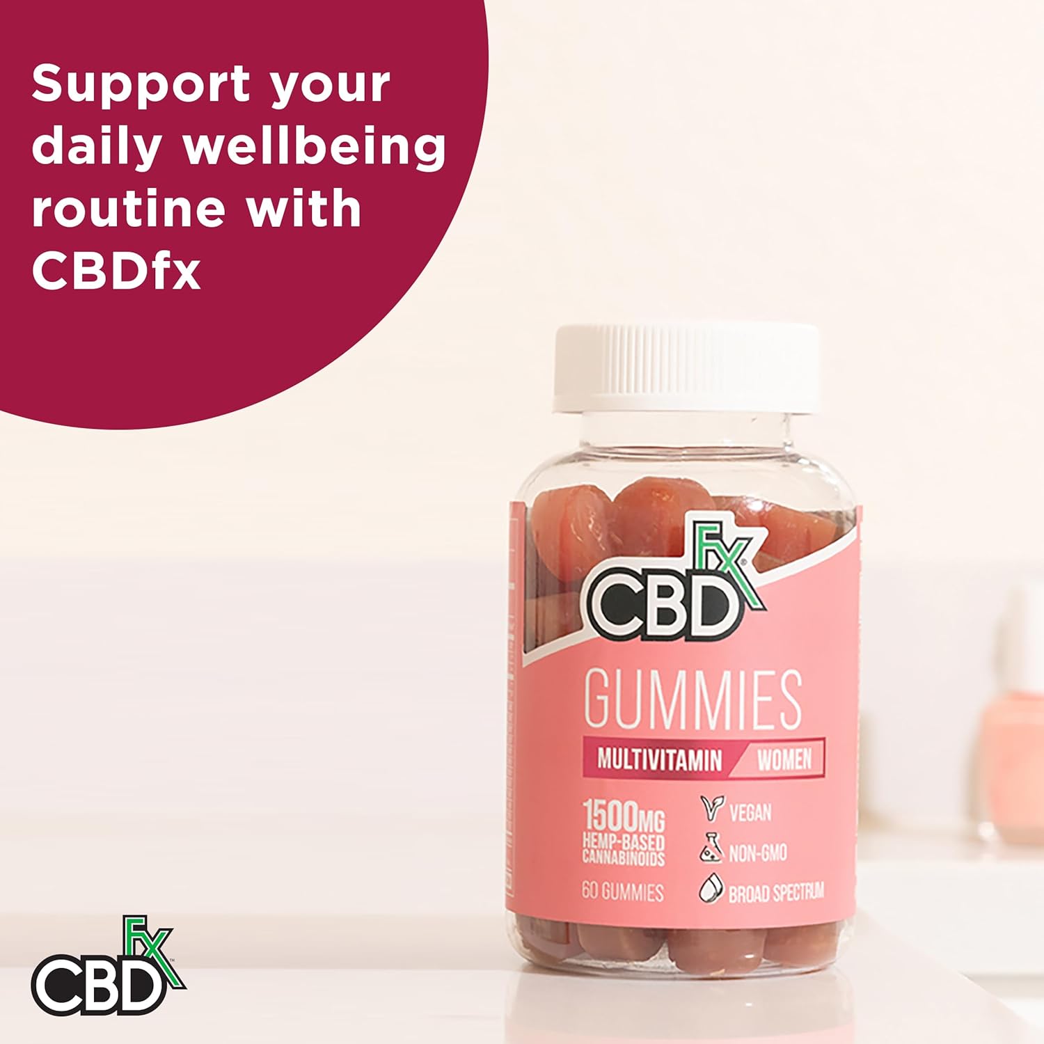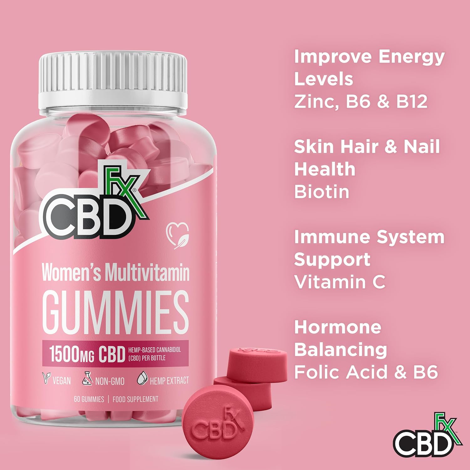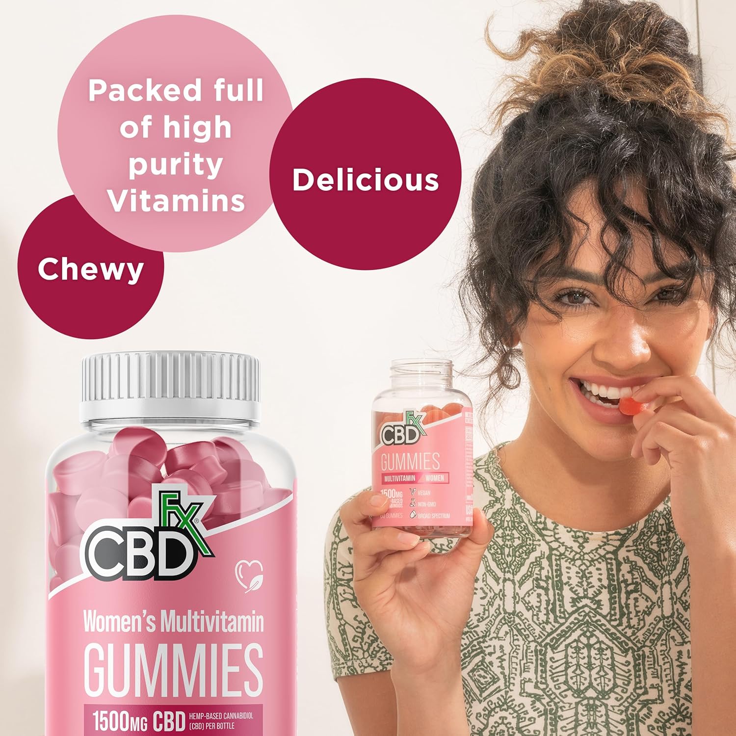 CBDfx 1500mg CBD High Strength Women's Multivitamin Vegan Gummies, Vitamin A, C, D3, E, B6, B12, Biotin, Calcium and Zinc 60x Bottle (30 Days)