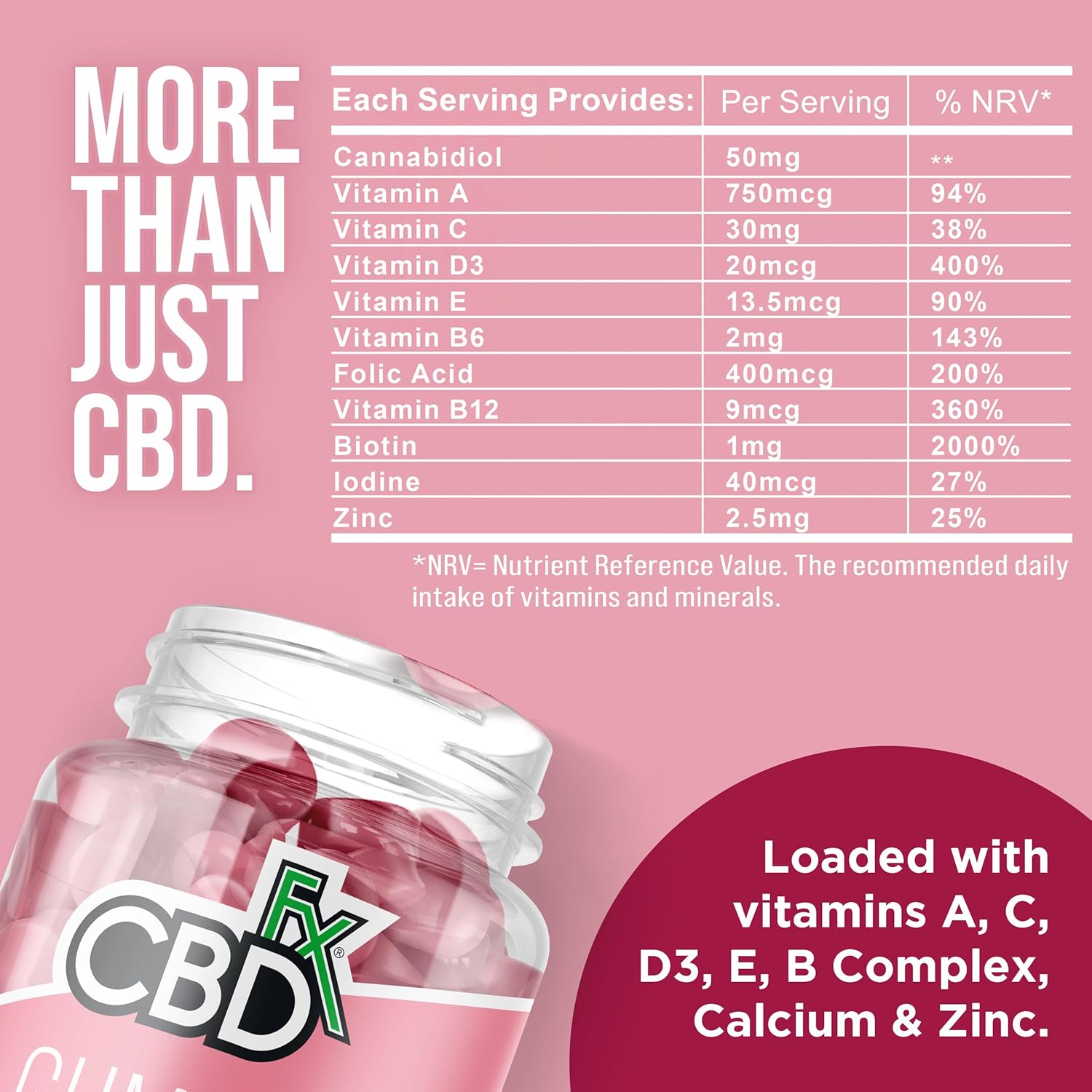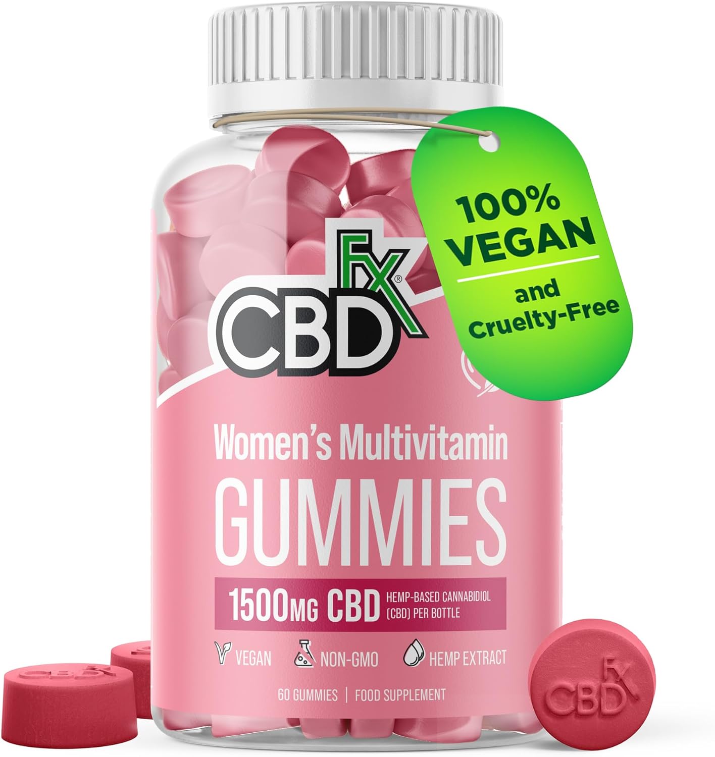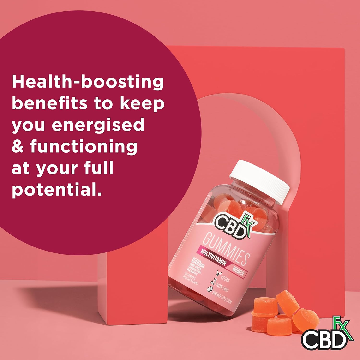 CBDfx 1500mg CBD High Strength Women's Multivitamin Vegan Gummies, Vitamin A, C, D3, E, B6, B12, Biotin, Calcium and Zinc 60x Bottle (30 Days)