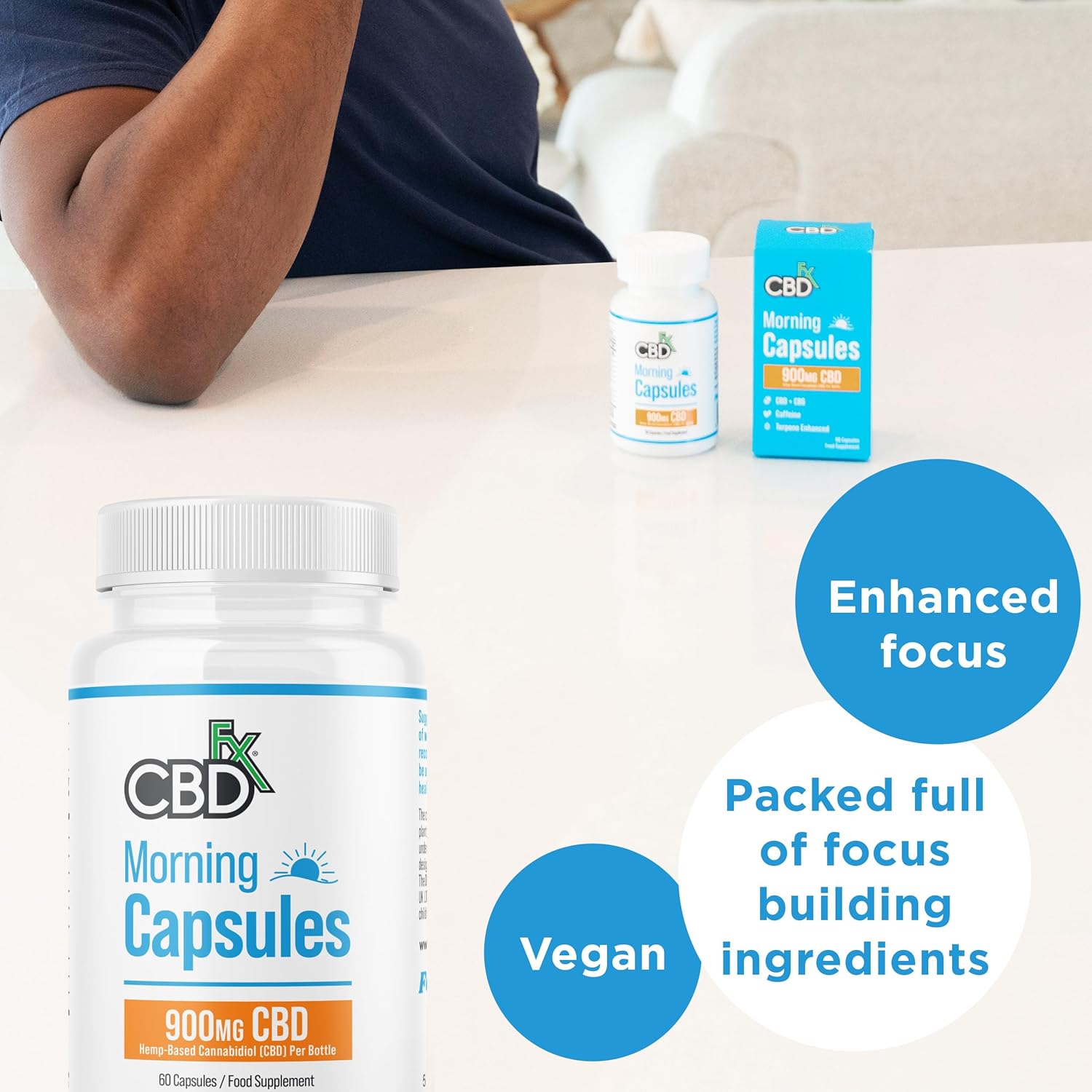 Cbdfx 900Mg Cbd High Strength Morning Cbd Capsules With Caffeine, Cbg & Unique Terpene Blend, Vegan, Gluten Free, 60 Capsules