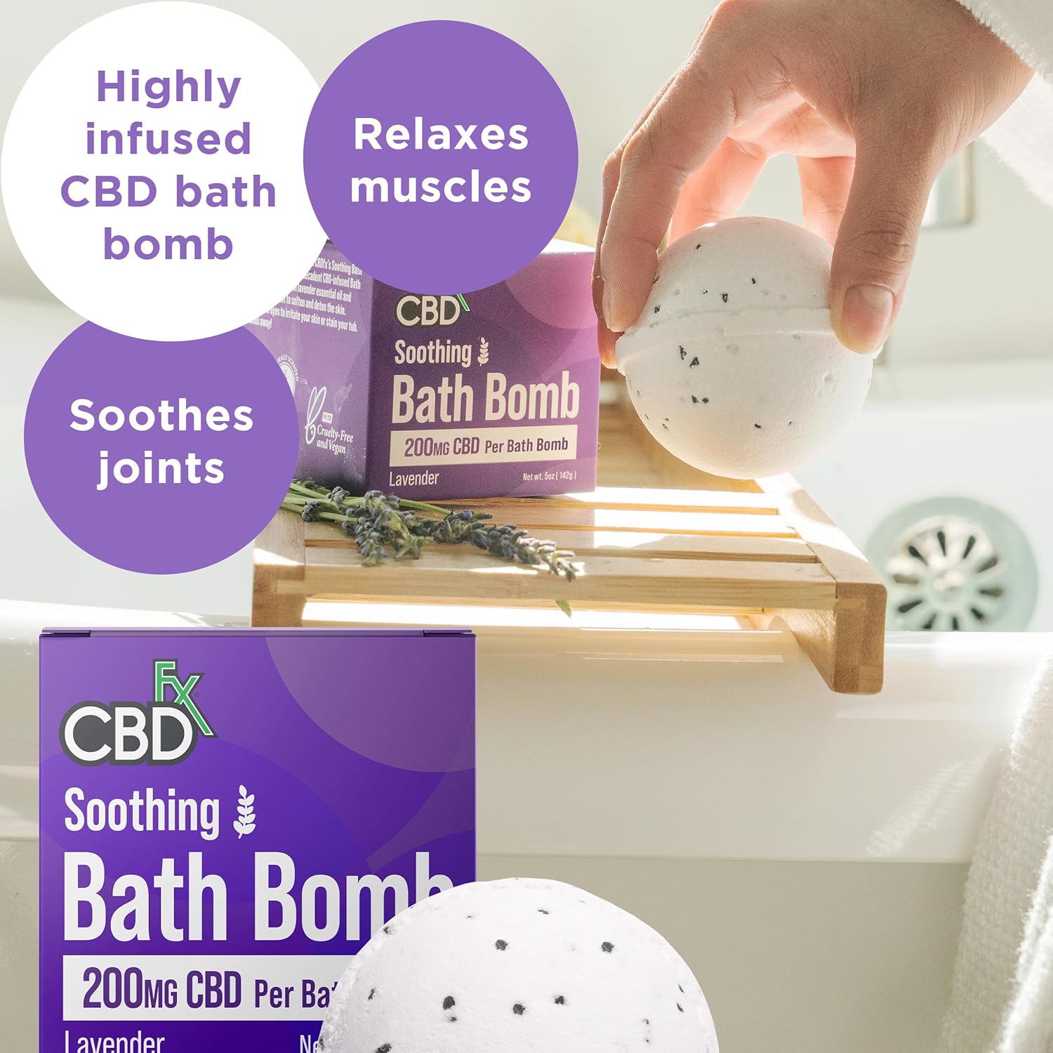 Cbdfx Bath Bomb 200Mg High Strength Soothing Lavender Hawaiian Black Salt Vegan Cruelty-Free Single Bath Bomb