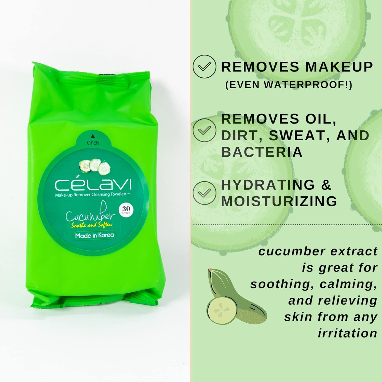 Celavi Makeup Remover Cleansing Wipes Removing Towelettes 2 Packs - 60 Sheets (Cucumber)