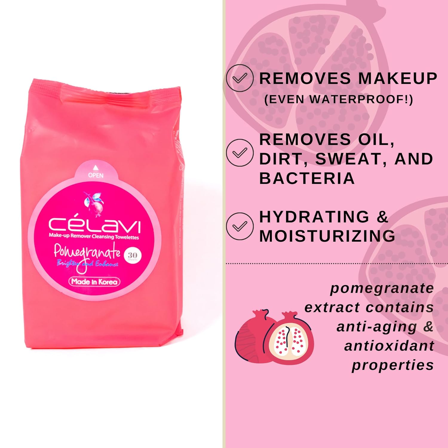 Celavi Makeup Remover Cleansing Wipes Removing Towelettes 2 Packs - 60 Sheets (Pomegranate)