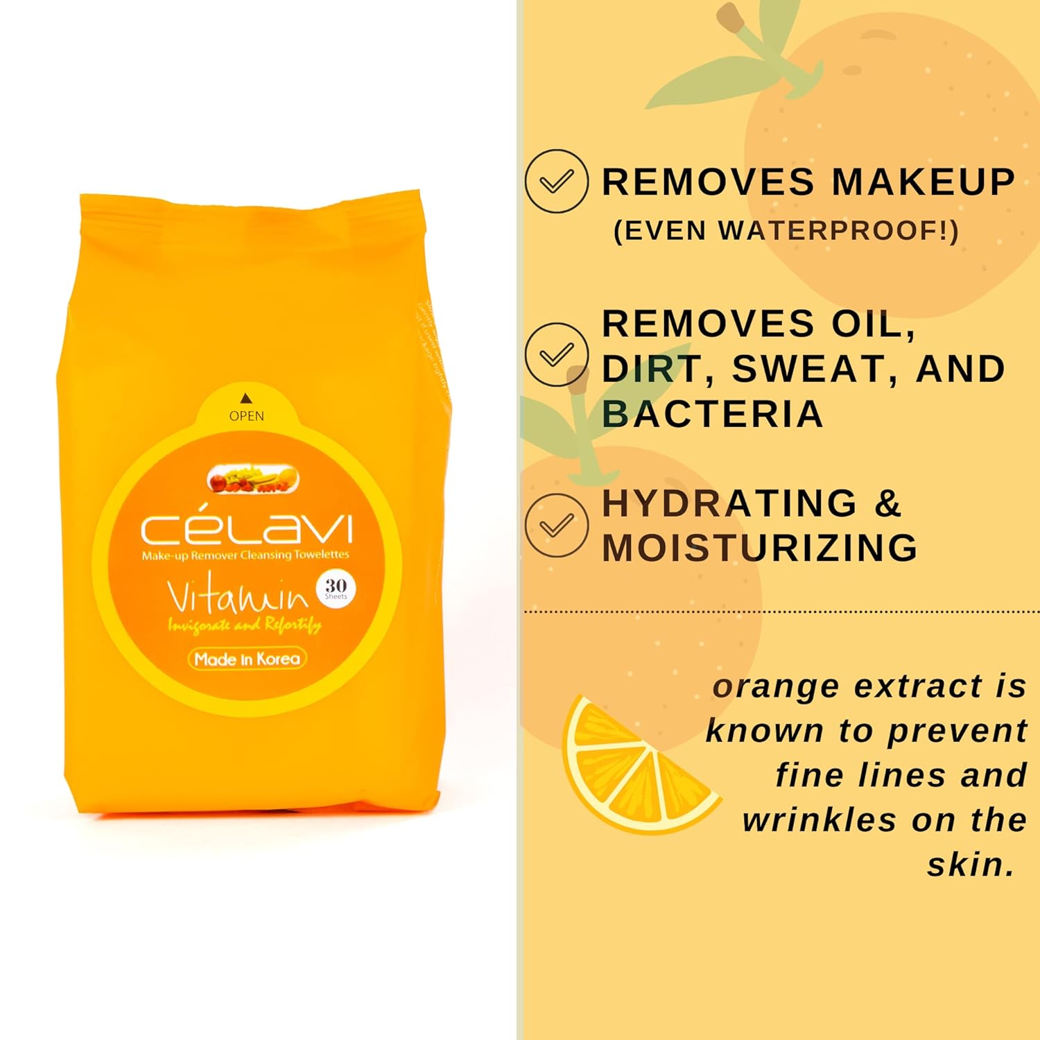 Celavi Makeup Remover Cleansing Wipes Removing Towelettes 2 Packs - 60 Sheets (Vitamin)