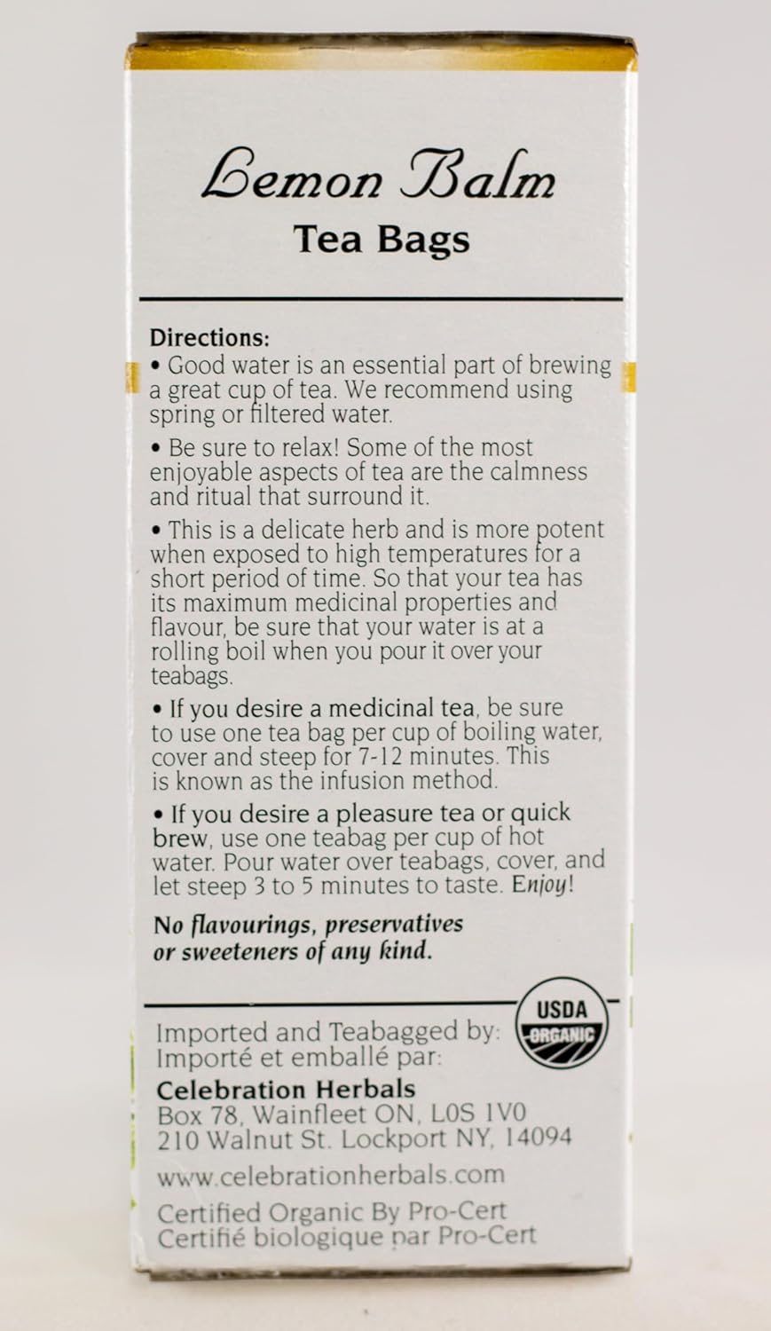 Celebration Herbals Organic Lemon Balm Tea Bags, 24 Count